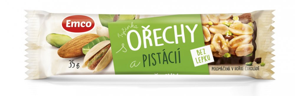 EMCO Super ořechy Pekanový ořech je tyčinka s arašídy, mandlemi a pekanovými ořechy. Tyčinka je bez podmáčení. Neobsahuje žádný přidaný cukr. Obsahuje pouze přirozeně se vyskytující cukry. Tyčinka je vhodná i pro vegany. Vláknina z kořene čekanky dodává tyčinkám lahodnou chuť. Skvěle poslouží jako malá dopolední nebo odpolední svačina.
