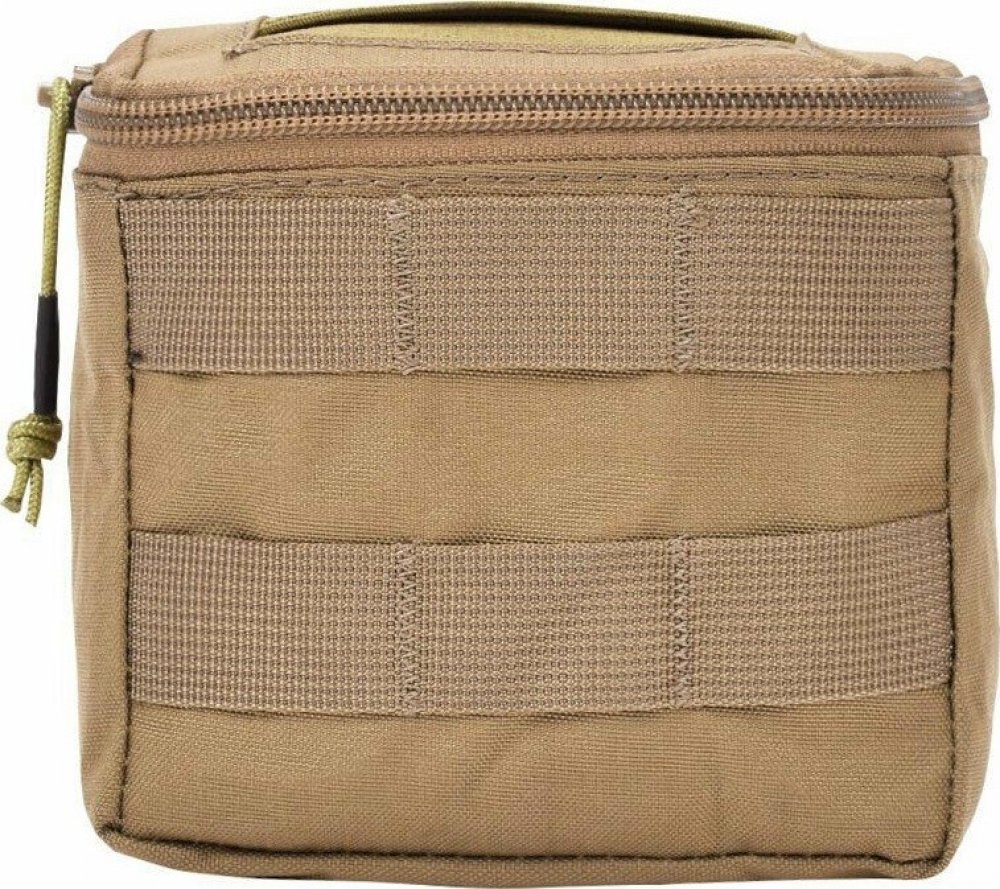 Vysoce odolný nylon v univerzální barvě Coyote Brown zaručuje dlouhou životnost i při náročném používání. Sumka je vybavena zipem po obvodu vrchu, což umožňuje i jiné využití jako univerzální taktická kapsa na drobné vybavení nebo nástroje. Připevnění zajišťuje standardní MOLLE systém, který umožňuje flexibilní montáž na jakoukoli modulární výstroj.