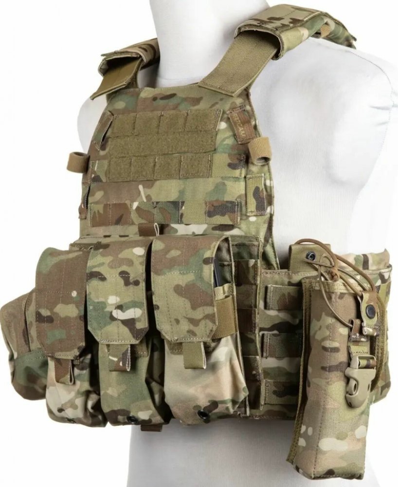 Pevný nylon 1000D v kombinaci s originální látkou Multicam od amerického výrobce garantuje autentické barevné provedení a univerzální maskování při hmotnosti pouze 1,34 kg. Vyztužené přední i zadní části obsahují vnitřní kapsy pro imitace plátů, zatímco vnější povrch je plně pokryt MOLLE vazbou pro neomezené možnosti rozšíření. Výrobce použil značkové zipy YKK pro maximální spolehlivost. Vypolstrovaný vnitřní obvod společně s širokými ramennými popruhy zajišťují komfort i během dlouhých operací. Vesta zahrnuje tři integrované sumky na zásobníky M4/M16/G36, boční kapsu na zip (využitelnou jako lékárnička) a specializovanou kapsu pro vysílačku.