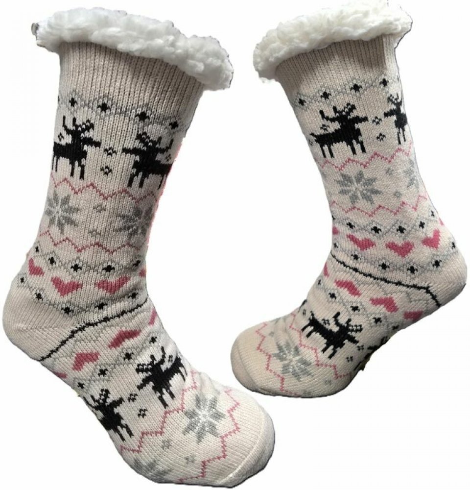 Emi Ross Domácí teplé ponožky s kožíškem protiskluzové srdce 2 béžová