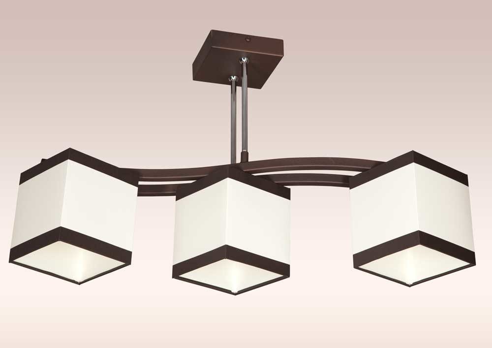 Lustr vyrobený z kovu v povrchové úpravě hnědá wenge v kombinaci s chromem. Stínidla textilplast bílá s hnědým lemem. Lustr lze zapojit na vypínání 0+3 nebo na přepínání 1+2. Dodáváno bez žárovek, možno použít úsporné.