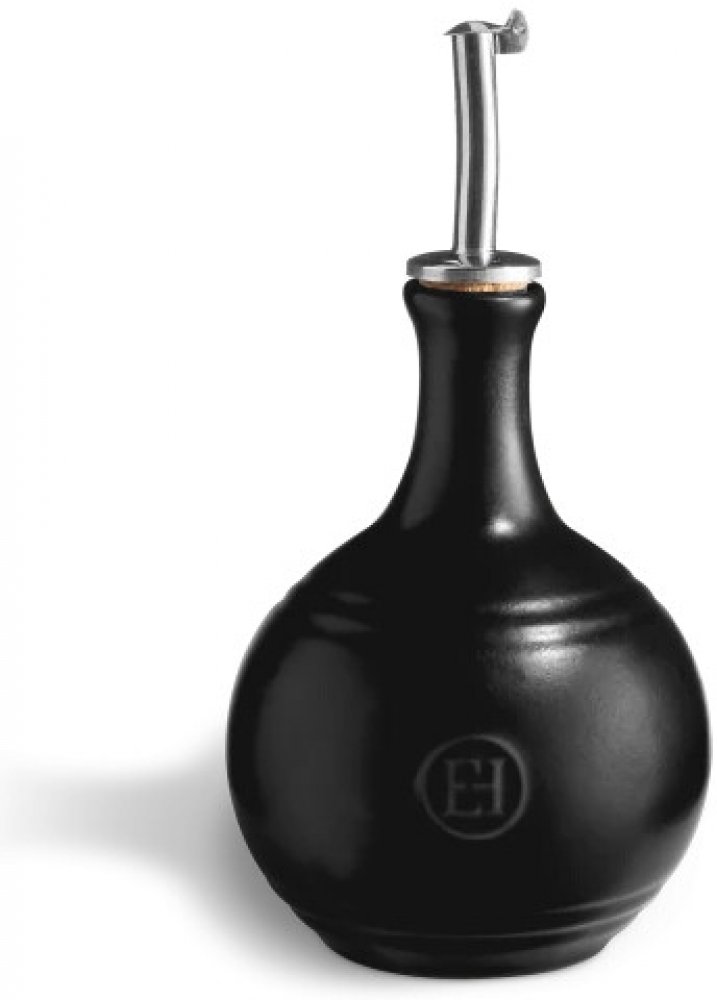 Keramická dóza na olej nebo ocet balonového tvaru s praktickou nerezovou nálevkou od francouzského výrobce Emile Henry o průměru 10,4 cm a objemu 0,45 l. Eye-catcher pro váš prostřený stůl v sytých barvách, které interiéru sluší.