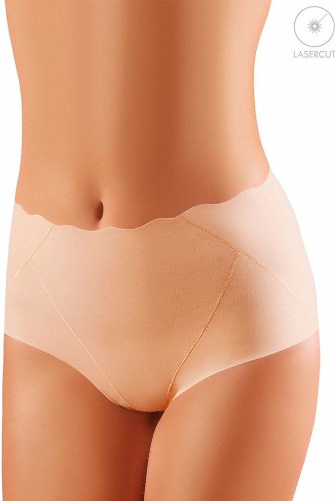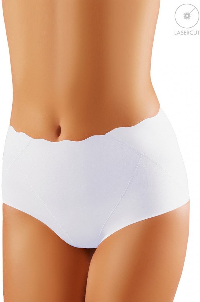 Dámské stahující kalhotky se zvýšenou linii pasu. Okraj kalhotek byl vytvořen speciální laserovou technologií. Díky tomu se kalhotky na koncích netřepí a nemusí být začištěny švem. Toto spodní prádlo není vidět pod svrchním oděvem. Vnitřní část rozkroku kalhotek je podšita bavlněnou látkou.