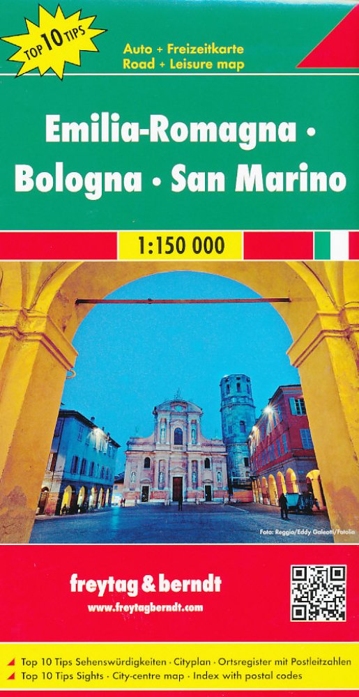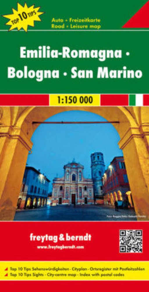 Kromě jasného designu obsahuje silniční mapa "Emilia-Romagna - Bologna - San Marino 1:150 000" mnoho dalších informací, jako je stav silnic, památky, kempy a mapa centra Bologni. Rychlou orientaci umožňuje i rozsáhlý lokační index. Série „Top 10 Tips“ nabízí malou brožuru, ve které je stručně popsáno deset nejdůležitějších památek v několika jazycích. Podrobnosti: top 10 tipů na památky, mapa měst...