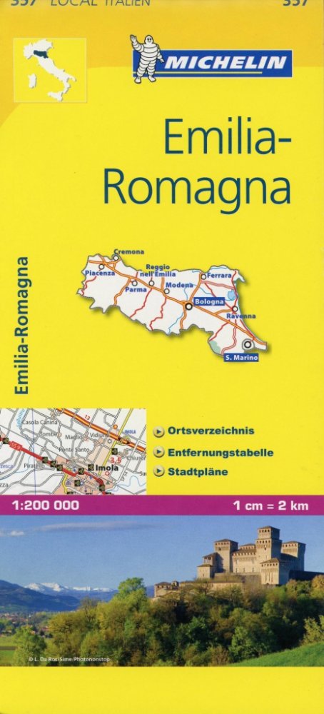 Die Michelin-Localkarte Emilia Romagna (auf Deutsch), im Maßstab 1:200.000, mit präzisen Angaben zu den Orten ist ideal für den Touristen. Die Karte ist dein zuverlässiger Begleiter auch abseits der Hauptverkehrsstraßen. Das Register mit Ortsverzeichnis ermöglicht eine detaillierte Suche.