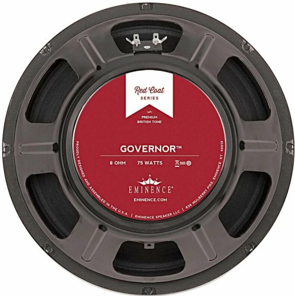 Kytarový reproduktor Eminence Governor je přirozeným vylepšením klasického amerického zesilovače. Všestranný kytarový reproduktor, skvělý pro jižanský rock nebo blues. Hezký pevný low-endový, hladký střední a vysoký jiskřivý tón. Britský bratranec Red White and Blues.