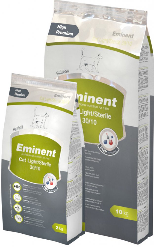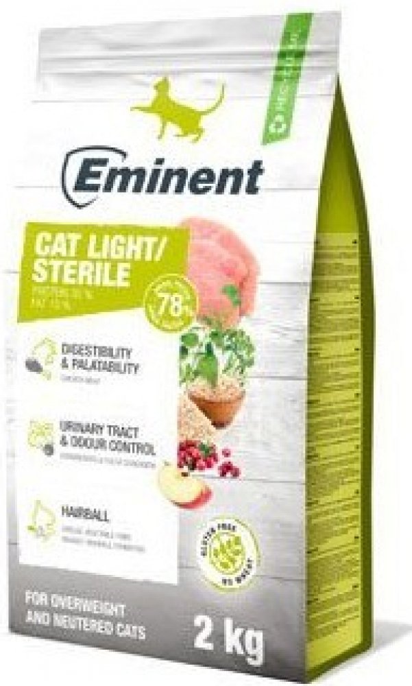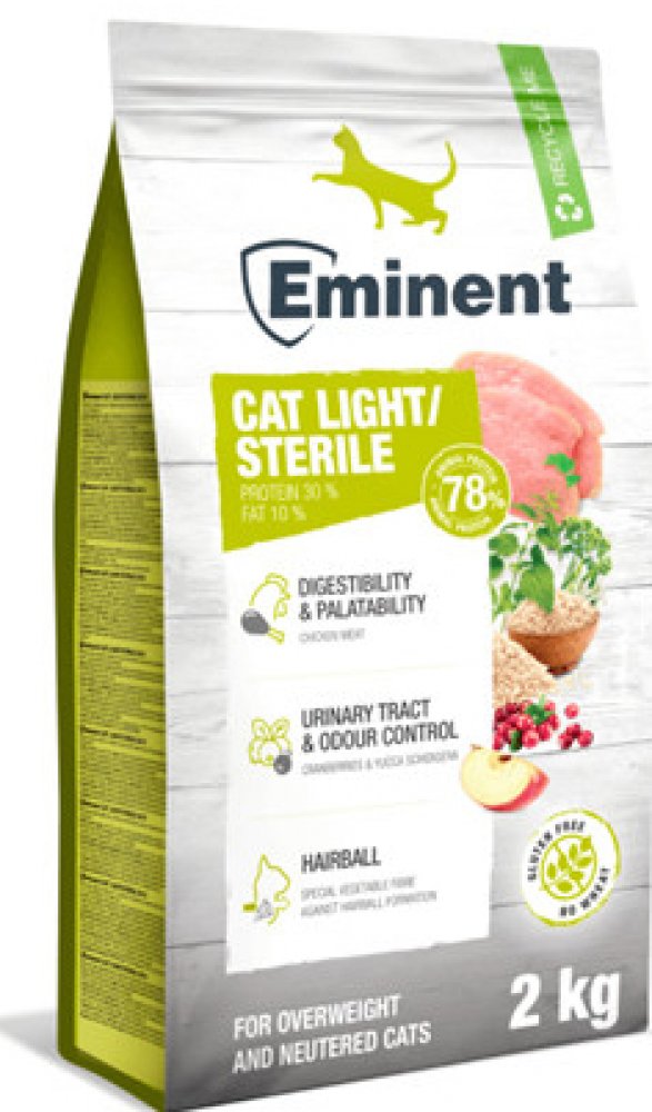 Eminent Cat Light/Sterile je speciálně formulované bezlepkové krmivo pro dospělé kočky s nadváhou nebo kastrované kočky, které potřebují pomoci s udržením ideální tělesné hmotnosti a zdraví.