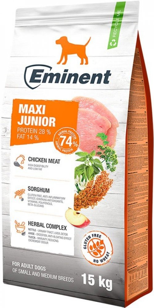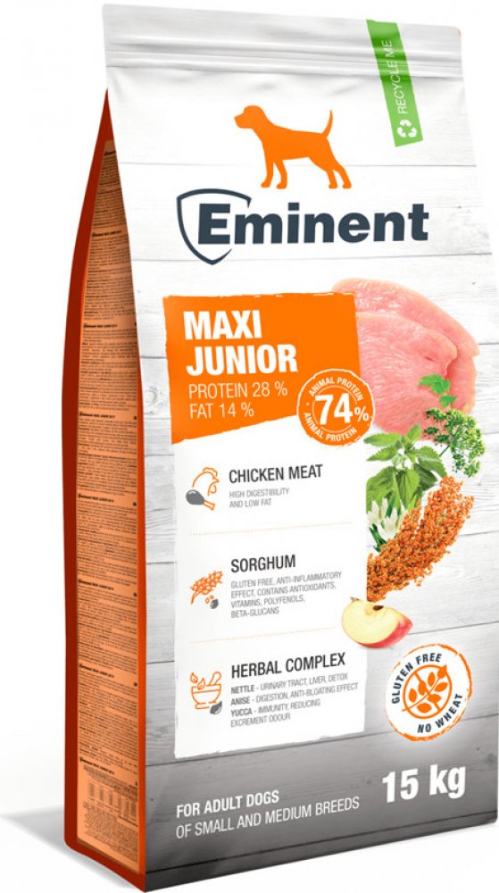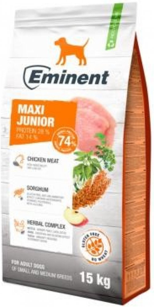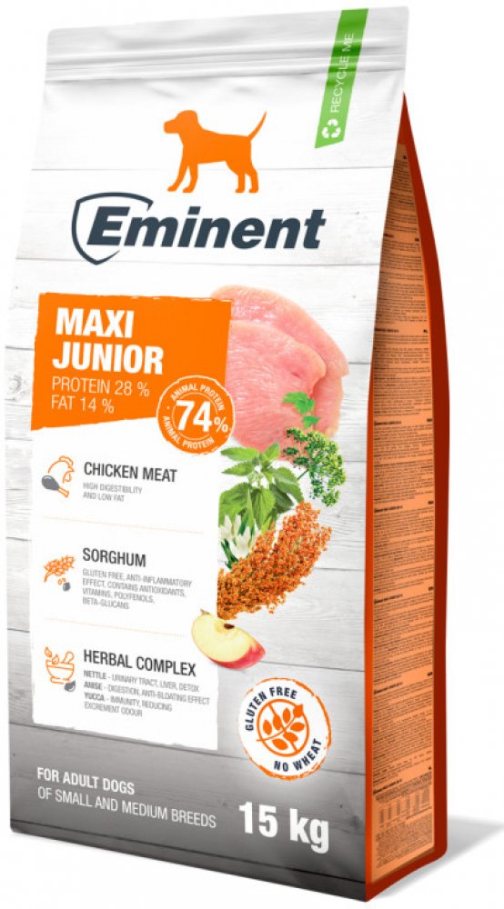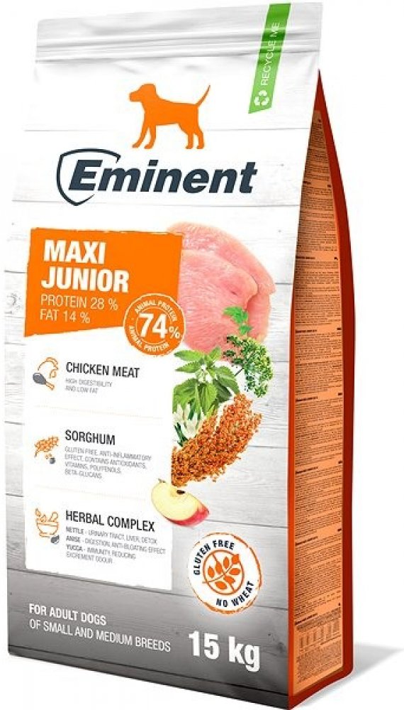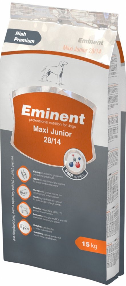 Eminent pro štěňata a juniory pro velká a obří plemena pro březí / kojící feny Drůbeží Eminent 15 kg prémiové suché tvrdé Maxi Junior 28 % obiloviny 15 kg z České republiky střední (200-500mg) 14 % 2.3 % 1.4 % 1 % 6.5 % standardní středně (25-40%) standardní základní snadný přechod pasivní (prebiotika) možné částečná (země výroby)