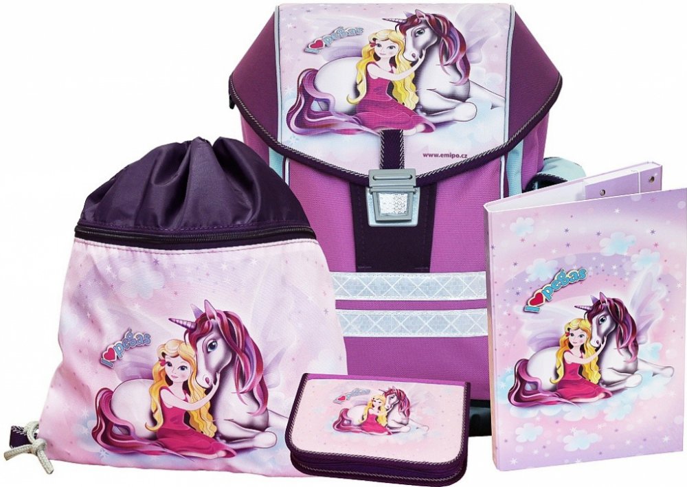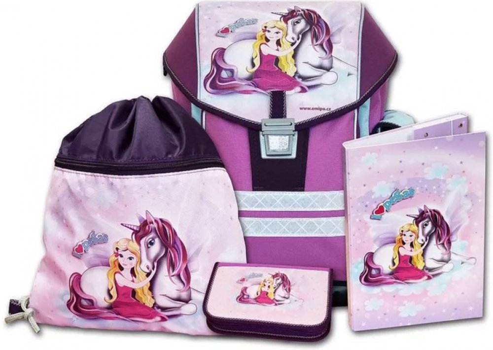 Emipo 1. - 2. třída ZŠ 4 ks pro holky polyester 23.0 l 33 x 23 x 39.5 fialové s jednorožci