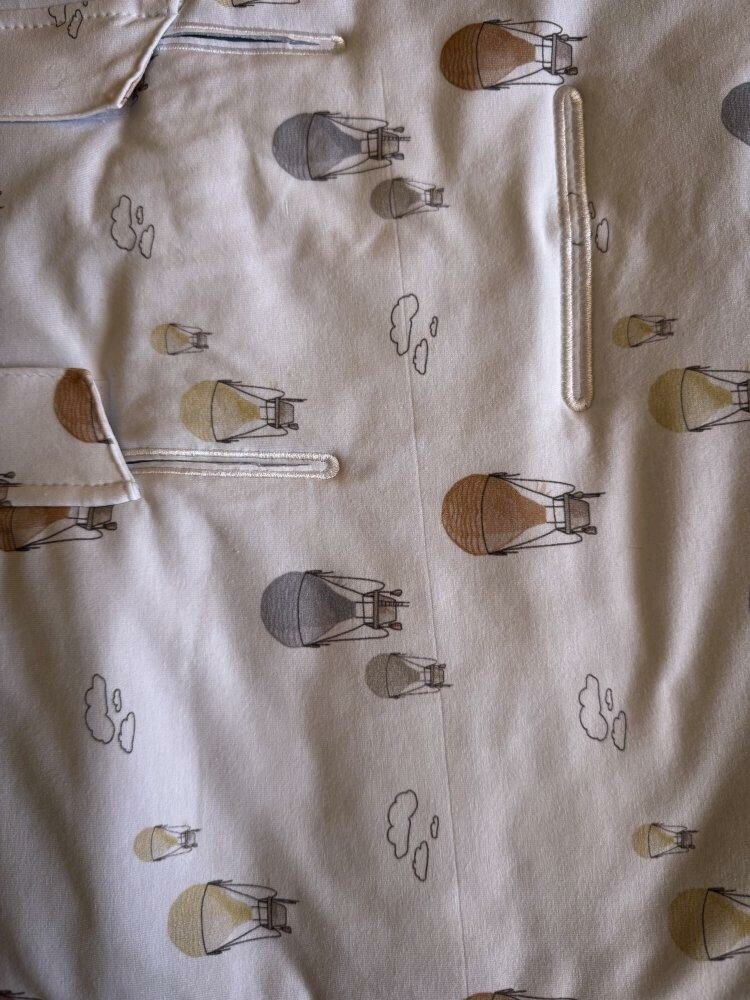 Vnější a vnitřní část fusaku je ušita z vysoce kvalitní certifikované bavlny. Spodní díl fusaku je omyvatelný, což jistě ocení maminky chodících dětí, ušpinění od bot lze jednoduše otřít vlhkým hadříkem. Promyšlený střih spodní části fusaku umožňuje variabilní použití. Dítě může mít nohy z fusaku buď zcela vytažené ven nebo se spodní díl přetáhne dopředu a vznikne tak kapsa chránící nohy před nepřízní počasí.