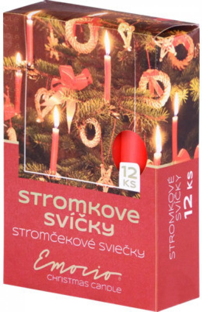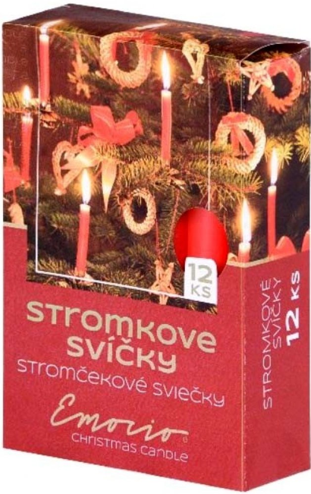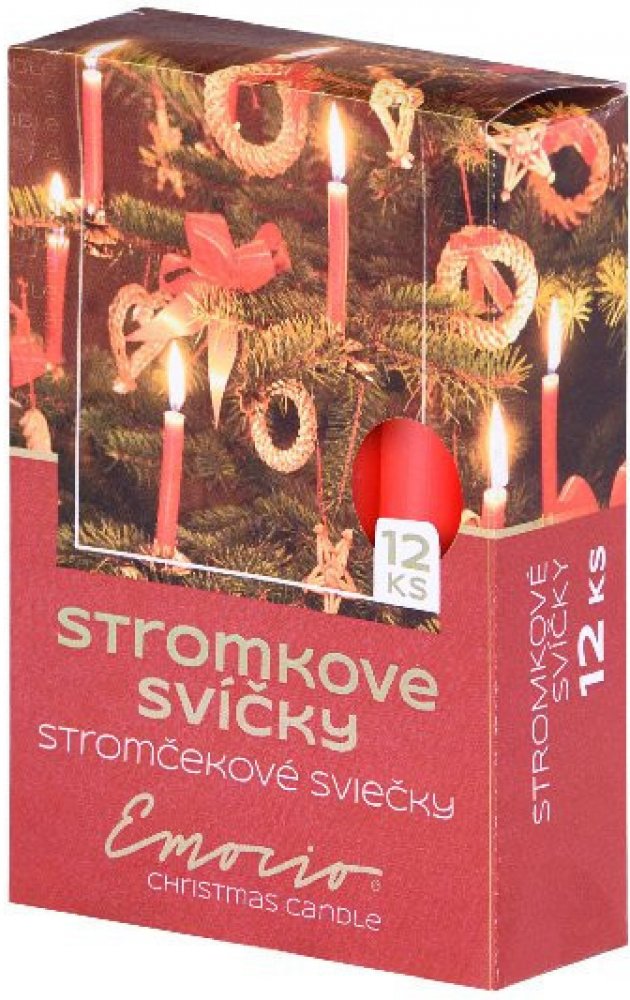 12 ks červených stromkových svíček v balení Rozměr každé svíčky 12 × 100 mm – elegantní a kompaktní Balení