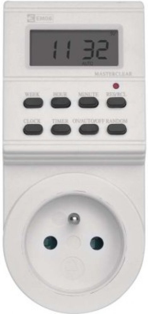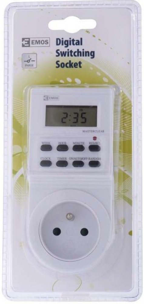 Digitální spínací hodiny do zásuvky. Spínací hodiny jsou přístroj, který je určený pro pravidelné spínání a vypínání spotřebičů. Využití najde v opakovaném ovládání přístrojů např. ve Vaší nepřítomnosti. Zátěž spíná jak indukční (zářivky, stykače, motory…) tak i odporovou (teplomety, přímotopy, žárovky, halogeny…).