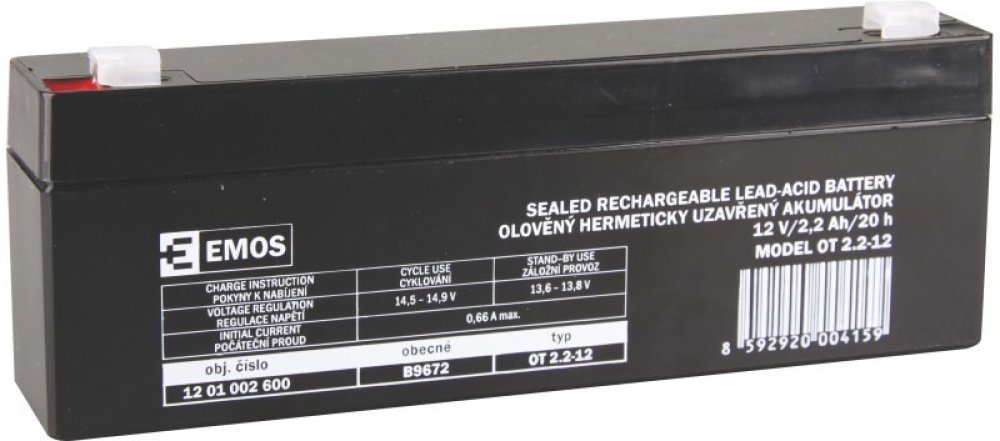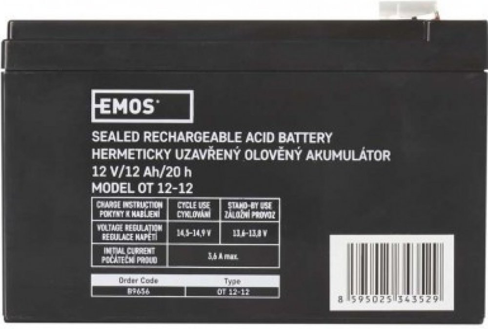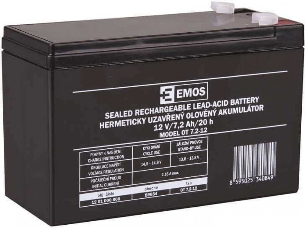 Akumulátor EMOS je vhodný jako náhradní baterie pro záložní zdroje UPS, RBC kity, elektronické systémy EZS, EPS, záložní systémy výtahů apod.