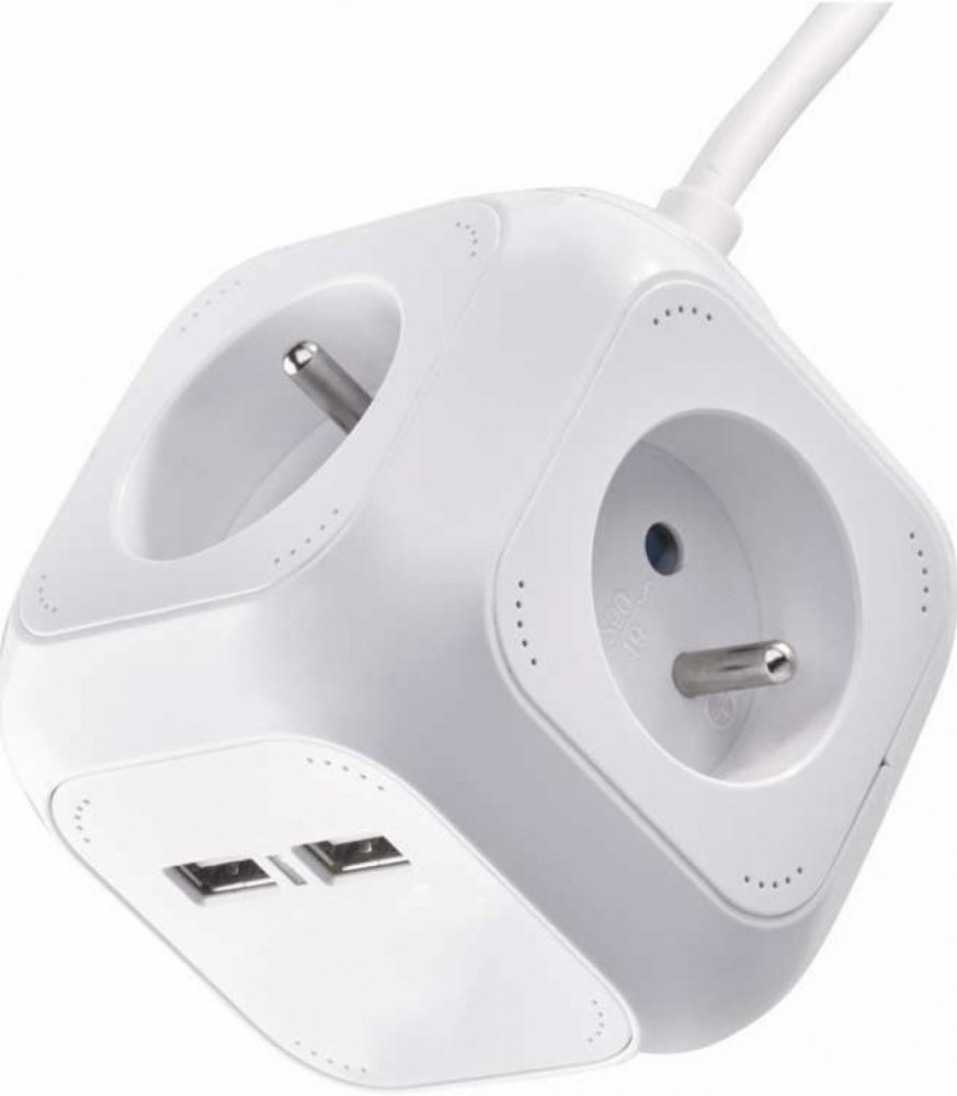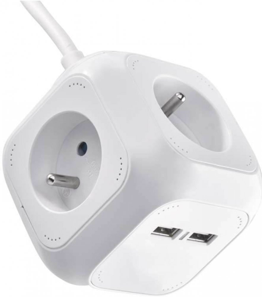 Prodlužovací kabel - kostka 1,9 m / 4 zásuvky / bílý / PVC / s USB / 1 mm2. Ideální a funkční řešení, kompaktnost. USB výstup.Prodlužovací přívod ve tvaru kostky se 4 zásuvky (250 V~, 16 A, 3 680W) a 2mi USB porty (max.2,1 A), délkou připojovacího kabelu 1,9 m nabízí ideální funkční a elegantní řešení do Vaší domácnosti, kancelářských prostor. Součástí balení je držák pro snadné upevnění na stůl. ...