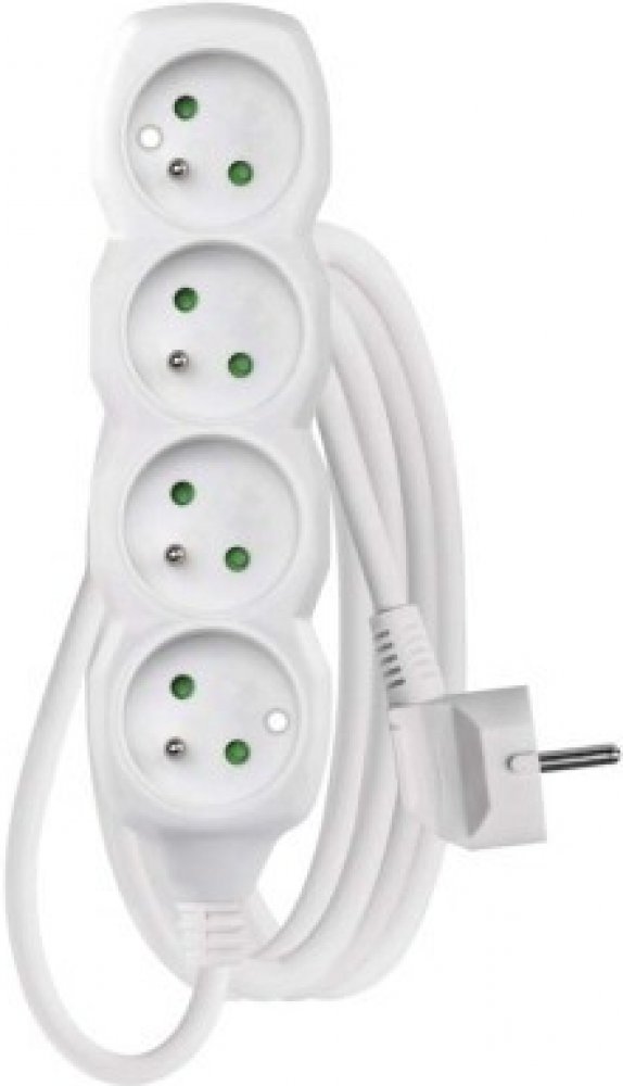 Bílý prodlužovací přívod, 4 zásuvka s délkou 3 m a průřezem vodiče 1 mm2. Vhodný pro maximální zátěž 10 A max. Prodlužovací přívod 3 m na 230 V~ slouží k prodloužení elektrické energie tam, kam pevná zásuvka nedosáhne.