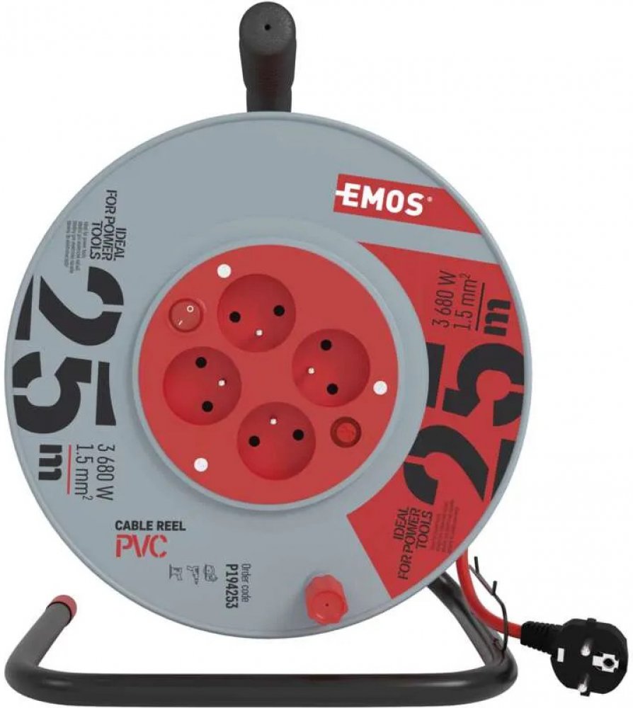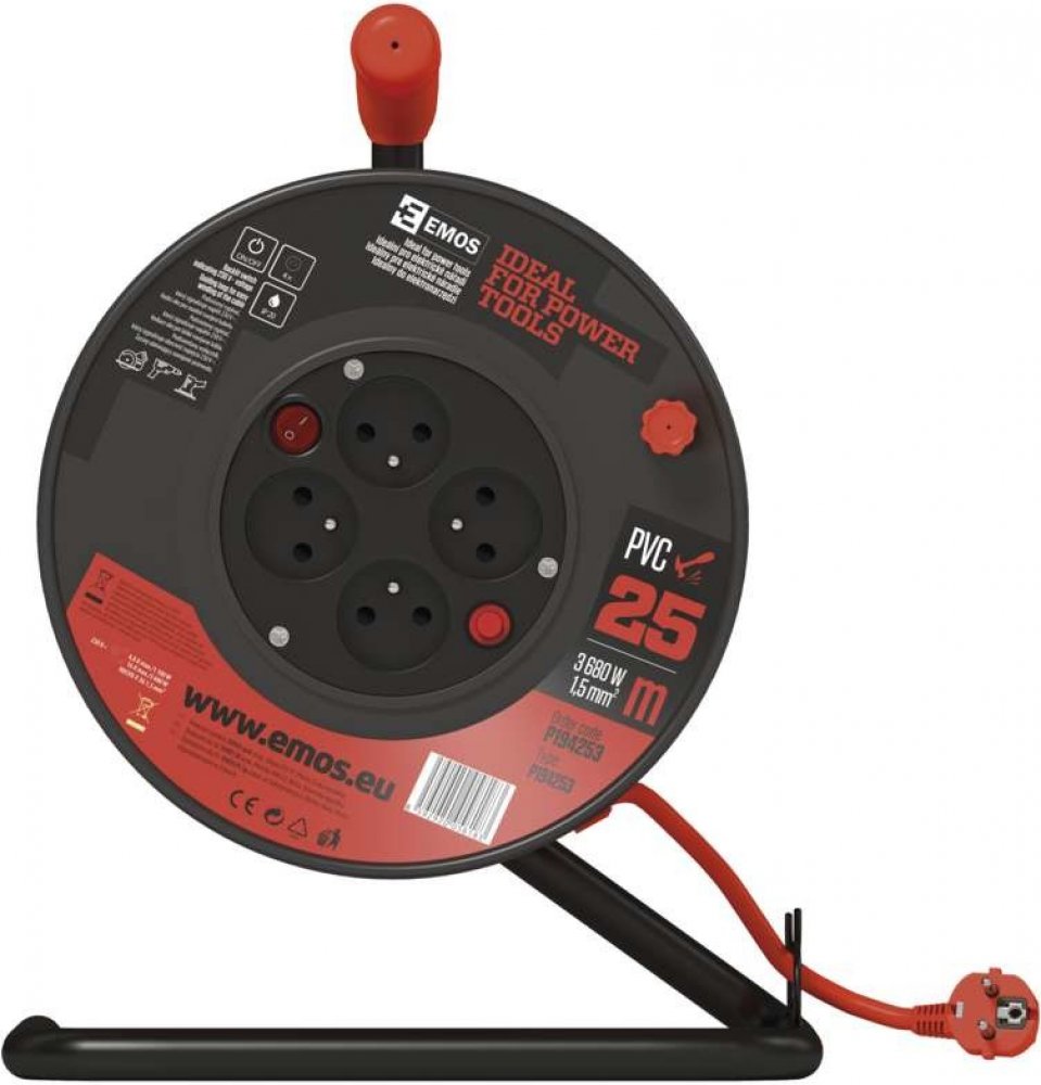 EMOS 4 25 m červené do interiéru pro domácí spotřebiče bez USB portů IP20 16.0 A 1.5 mm² kabelový buben s běžným konektorem (Schuko / typ E/F) 3680.0 W