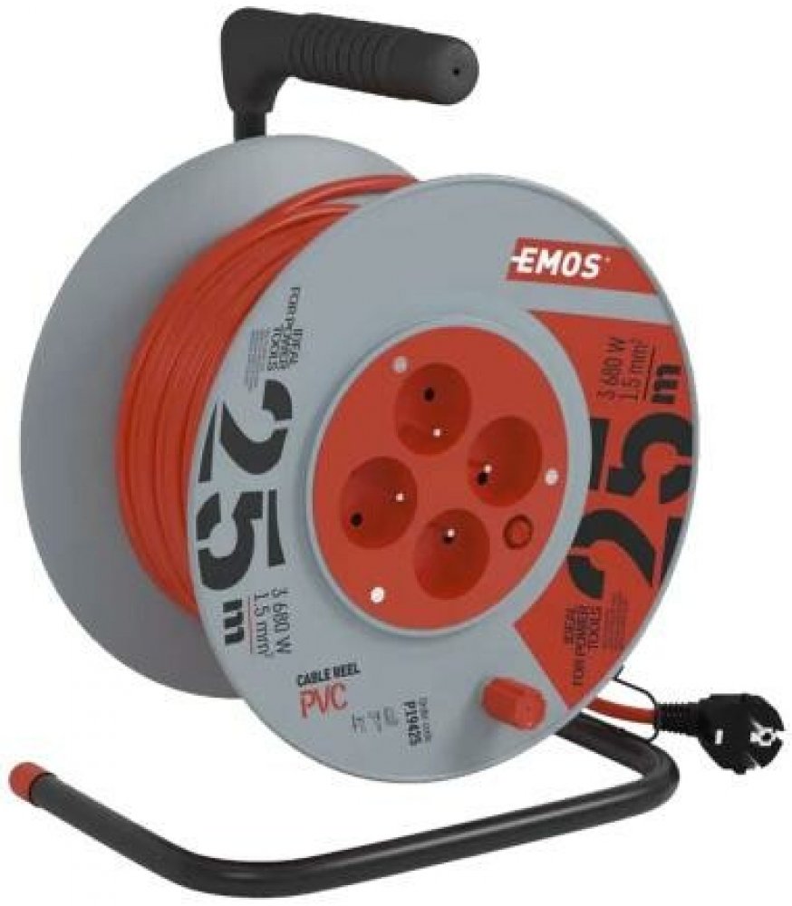 EMOS 4 50 m červené do interiéru pro domácí spotřebiče bez USB portů IP20 16 A 1.5 mm² kabelový buben