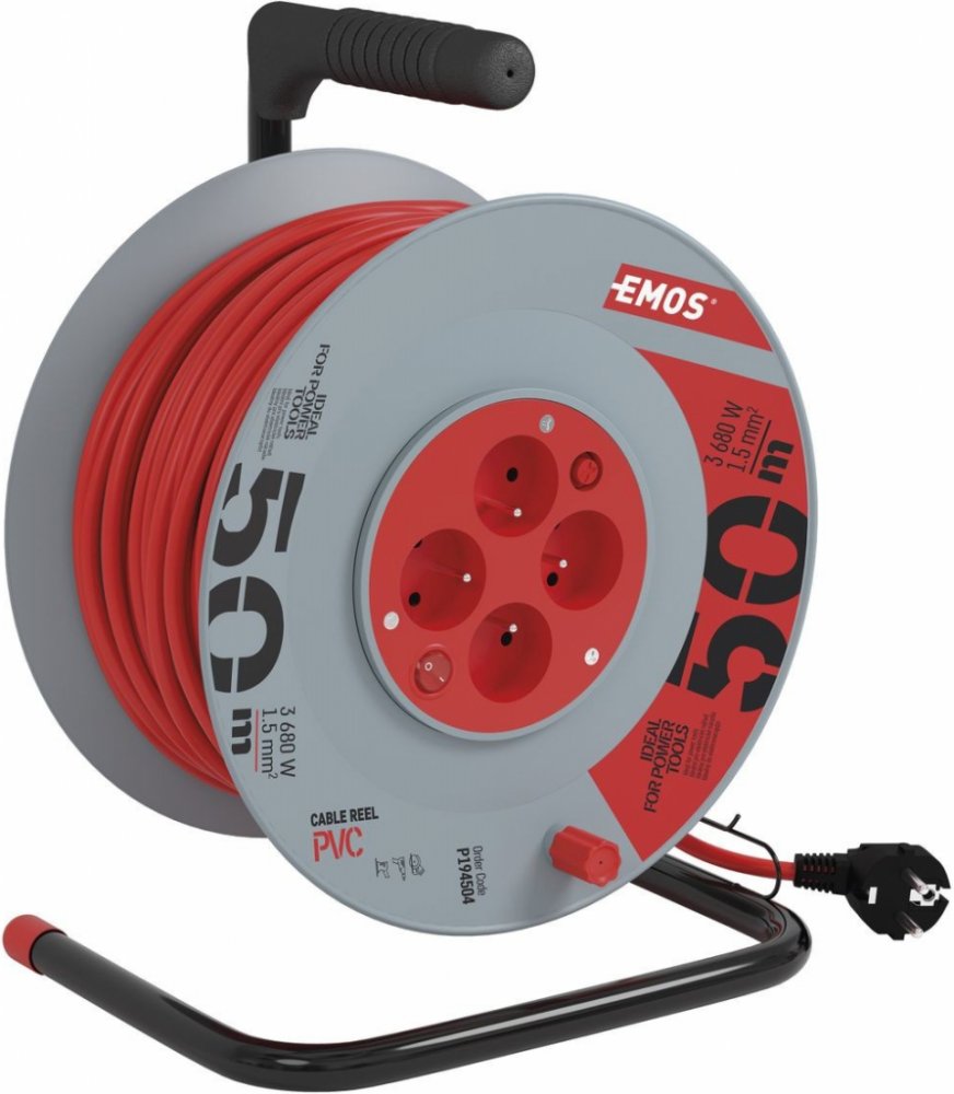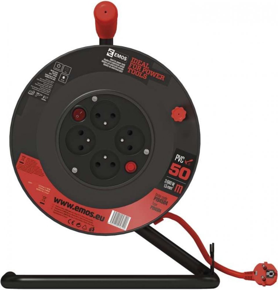 EMOS 4 50 m červené do interiéru pro domácí spotřebiče bez USB portů IP20 16.0 A 1.5 mm² kabelový buben s běžným konektorem (Schuko / typ E/F) 3680.0 W