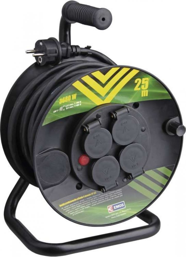 Kvalitní gumový naviják prodlužovacího přívodu. Je ideální pro prodloužení napájecí sítě 230V~. Jeho výhodou je pohodlná manipulace díky bubnu.barva: neuvádí sedalší funkce: nedélka: 25 mdětské clonky: nehmotnost: neuvádí sekrytí: IP44max. zátěž: 3 680 Wnapětí/proud: 230 V~počet zásuvek: 4× 2P + PEprodejní obal: 1 ksprodukt: buben s pohyblivým středemprůřez vodiče: 1,5 mm²rozměr: neuvádí setepelná pojistka: anotyp izolace: gumavodič: H05RR-F3Gzáruční doba: 2 rokyzatížení navinutého 230 V~: 4,8 A max./1 100 Wzatížení navinutého 400 V~: neuvádí sezatížení rozvinutého 230 V~: 16 A max./3 680 Wzatížení rozvinutého 400 V~: neuvádí se