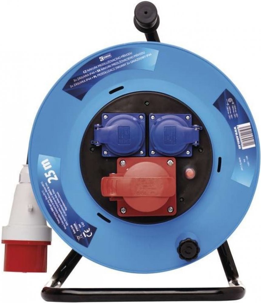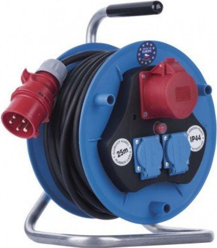 - Prodlužovací kabel na bubnu - 3 zásuvka s délkou 25m, průřezem vodiče 1,5 mm2.