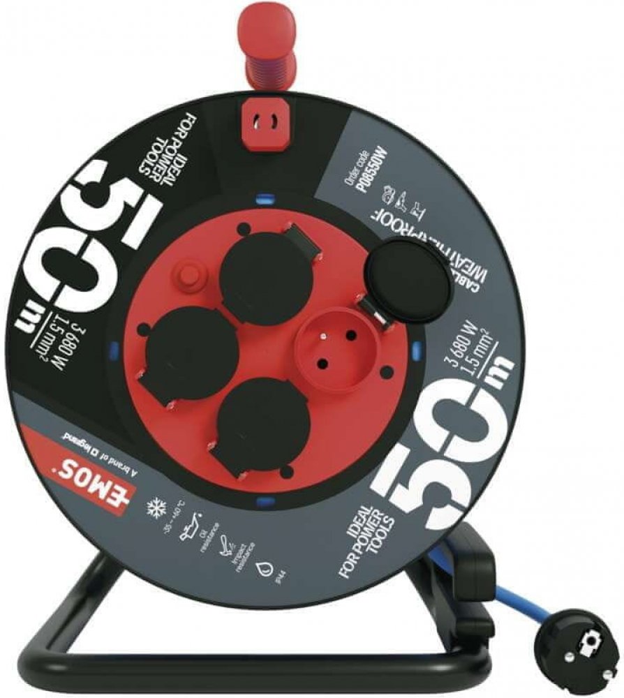 Ať už pracujete v parném letním dni nebo v časech mrazu s teplotami hluboko pod nulou, pak s navijákem Weatherproof budete mít přísun elektřiny na dosah. Svou funkci zvládne vykonávat ve velkém rozsahu pracovních teplot od -35 °C až do + 60 °C. Modrý kabel má navíc zvýšenou odolnost proti UV záření a oproti gumovému kabelu nezapáchá.