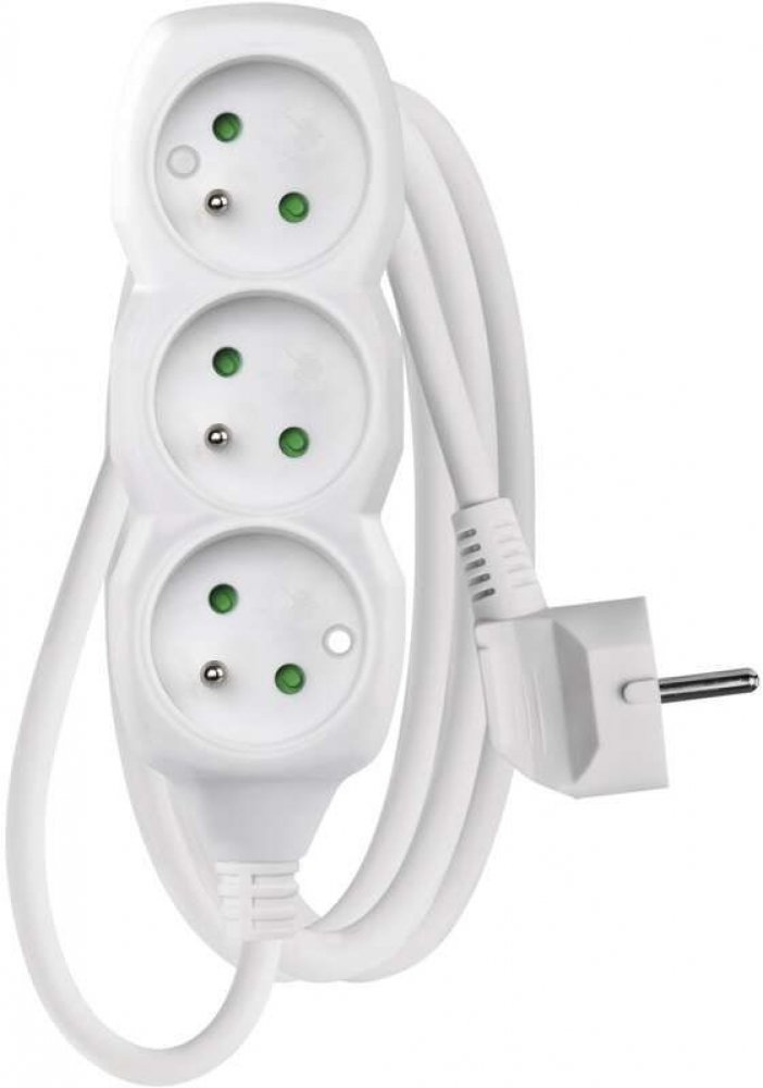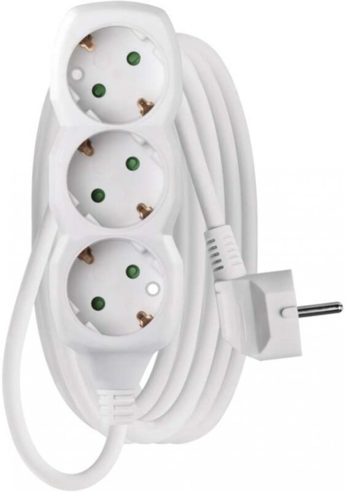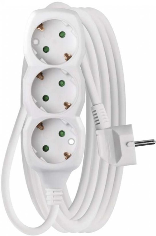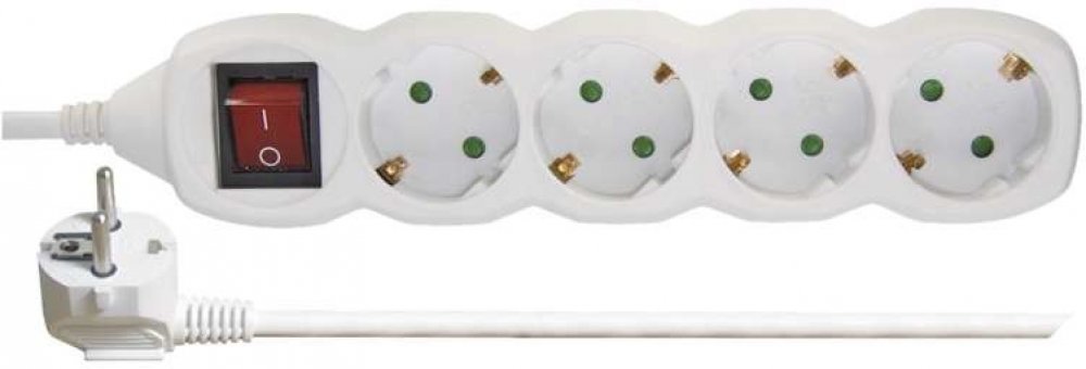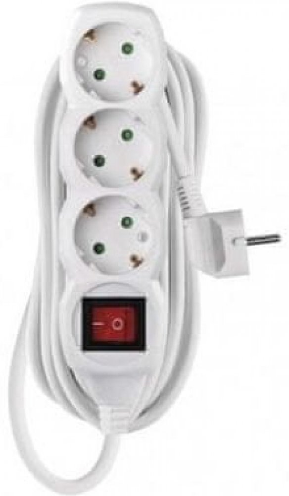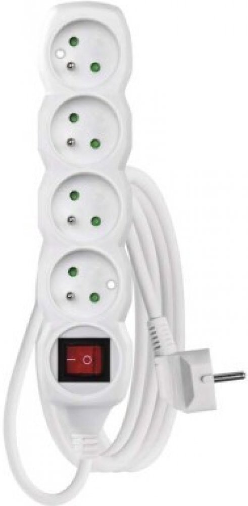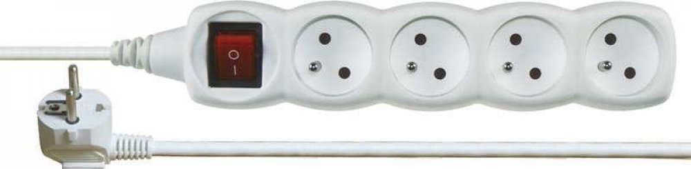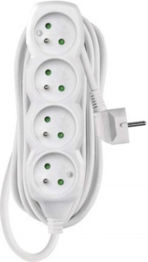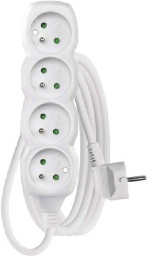 Bílý prodlužovací přívod, 4 zásuvka s vypínačem, délkou 2 m a průřezem vodiče 1 mm2. Vhodný pro maximální zátěž 10 A max.Prodlužovací přívod 2 m na 230 V~ slouží k prodloužení elektrické energie tam, kam pevná zásuvka nedosáhne.Při montáži na stěnu je nutné použít vrut se zápustnou hlavou PZ max. průměr 2,5–3 mm, délka 30–40 mm. V případě použití jiného průměru hrozí poškození plastové části otvor...
