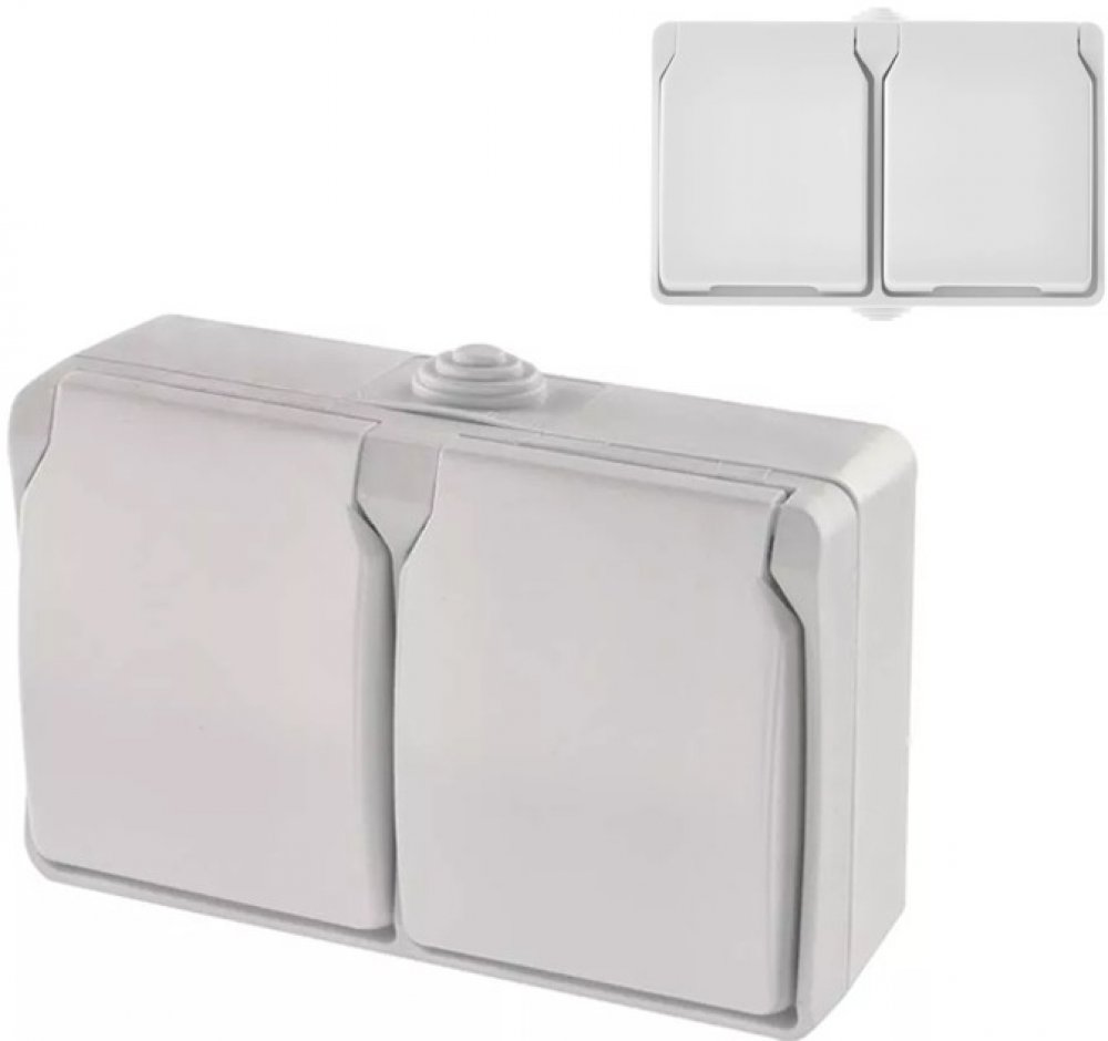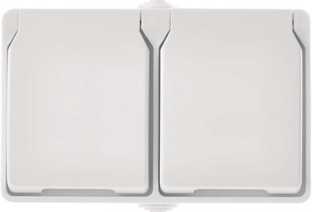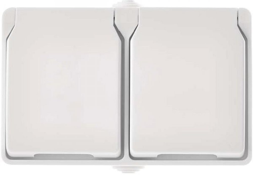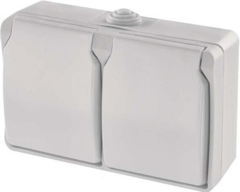 Kvalitní nástěnná voděodolná FRENCH dvojzásuvka s ochraným víčkem. S propojením zásuvek. -