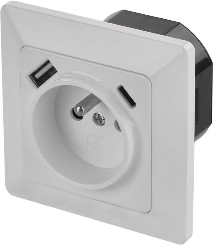 Zásuvka jednonásobná s ochranným kolíkem s USB nabíjením.