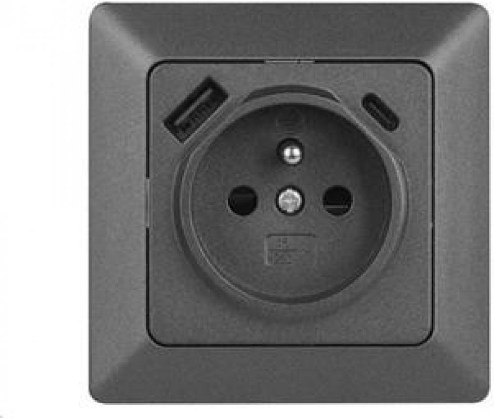 barva: antracit|design: FRENCH|krytí: IP20|napětí: 250 V~|podsvětlení: –|prodejní obal: 1 ks, PE sáček|produkt: zásuvka jednonásobná s ochranným kolíkem a USB výstupem 3 A max.|proud: 16 A|provedení: 1 nás.|typ připojení: automatická svorka|značka: EMOS|způsob montáže: do krabice (dop. hloubka min. 60 mm)