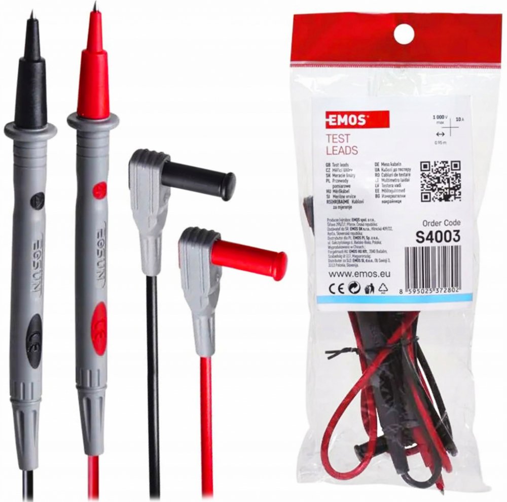 Měřící šňůry BB58 pro multimetr EMOS S4003 (EAN: 8595025372802) jsou náhradní měřící vodiče určené pro měření základních elektrických veličin.