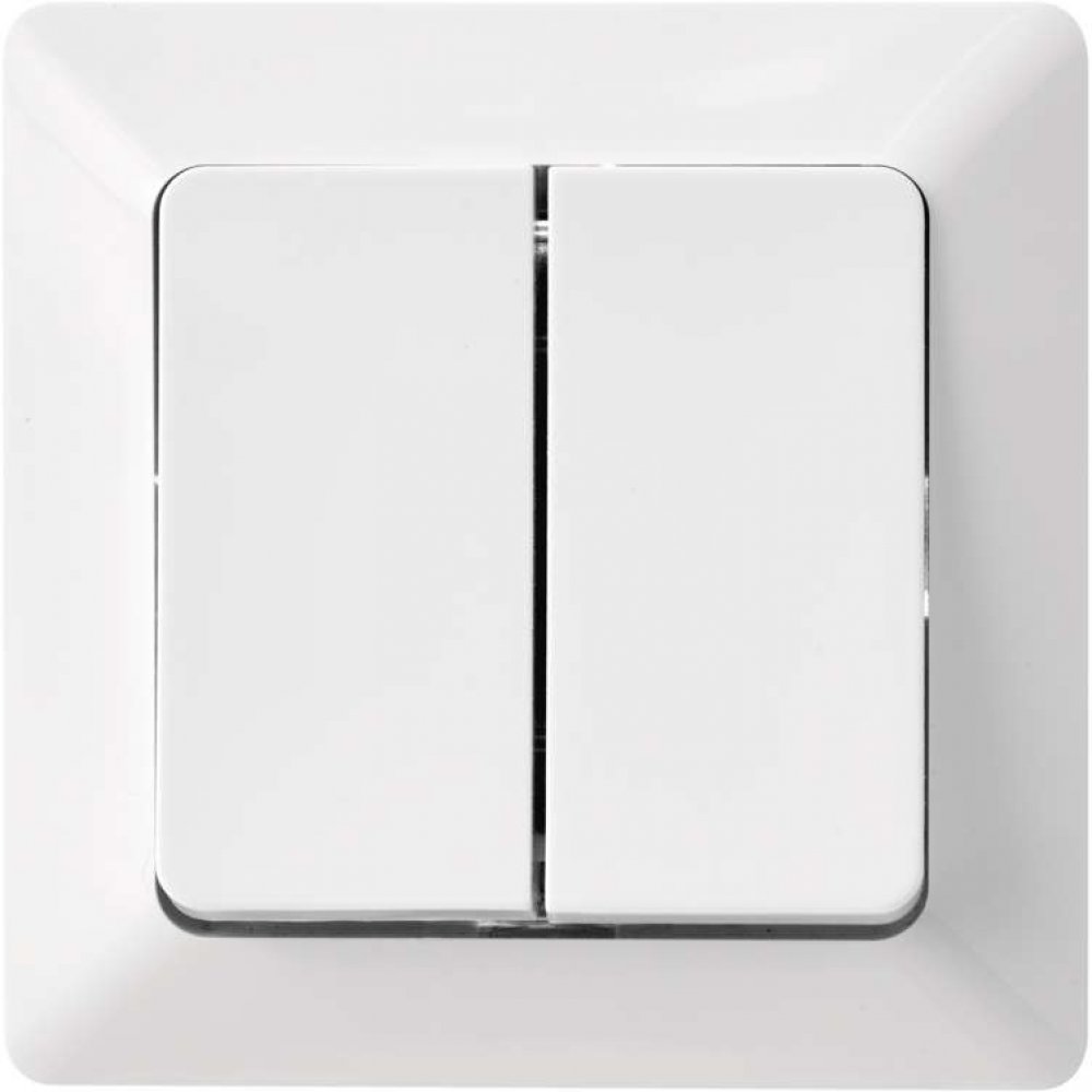 Schodišťový, dvojitý vypínač ř. 5B (6+6). Montáž do instalační krabice. Stupeň krytí IP20. Použití jako spínač k zapnutí dvou osvětlení ze dvou míst například na chodbách a schodištích atd.