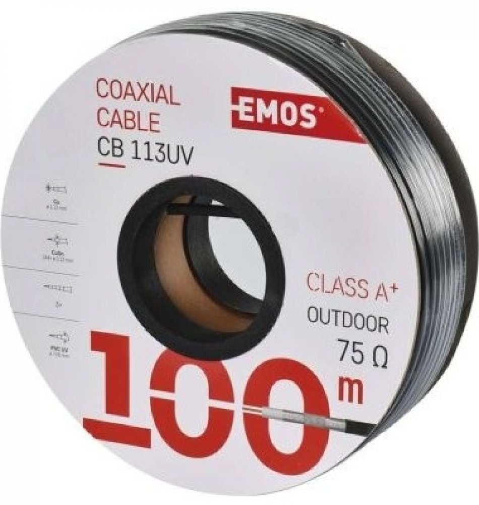 Klíčové vlastnosti produktu EMOS Koaxiální kabel CB113UV, 100m Koaxiální kabel EMOS slouží jako propojovací prvek mezi anténou a televizí Je to koaxiální kabel bez konektorů Anténní kabel se postará o kvalitní přenos obrazu Šumu zabraňuje kvalitní stínění koaxiálního kabelu Barva kabelu EMOS je černá Mechanickou ochranu kabelu zajišťuje kvalitní opletení S kabelem EMOS s délkou 100 m dosáhnete úpl...