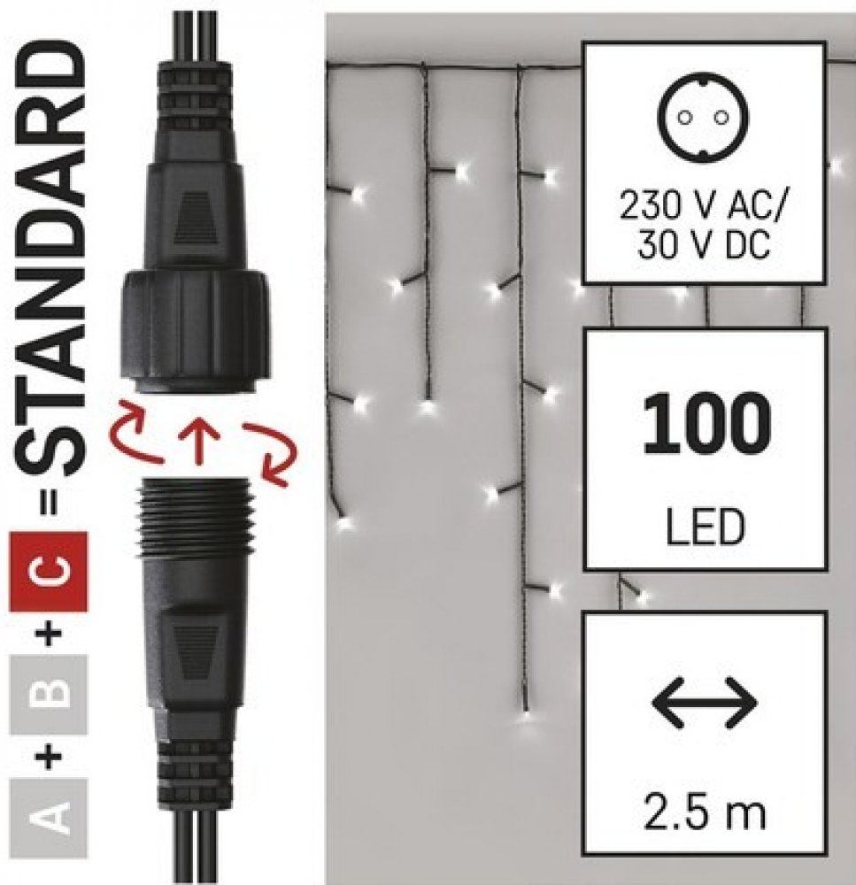 Řetěz vánoční spojovací LED, rampouchy 2,5m, venkovní, studená bílá, Standard, EMOS