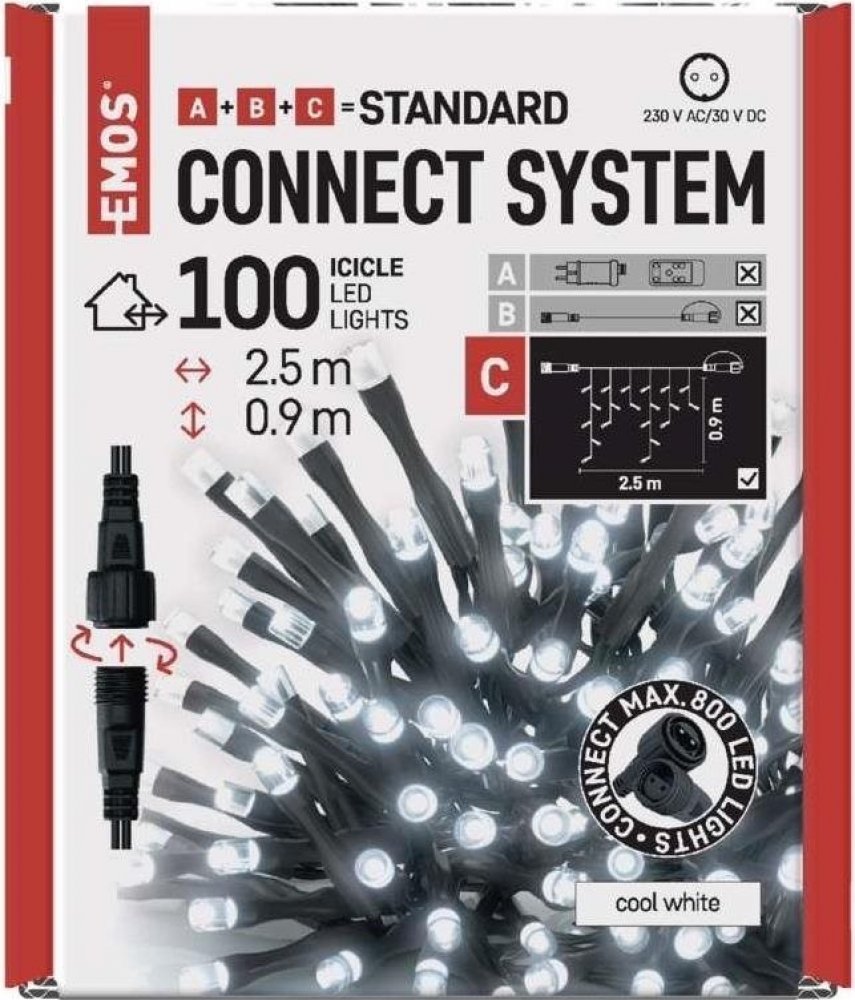 Tyto LED rampouchy jsou určeny k napojení na startovací sadu nebo jiný prvek systému EMOS CONNECT STANDARD. Jako součást systému je můžete libovolně kombinovat s dalšími řetězy, světelnými sítěmi či záclonami a vytvořit tak komplexní osvětlení na jediný napájecí zdroj (až 800 LED).