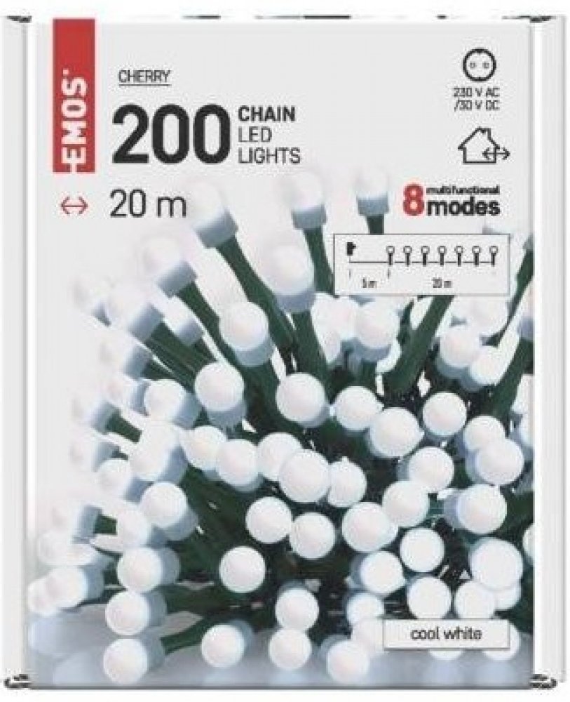Emos D5C07 200 LED cherry řetěz kuličky 20 m venkovní i vnitřní studená bílá programyA