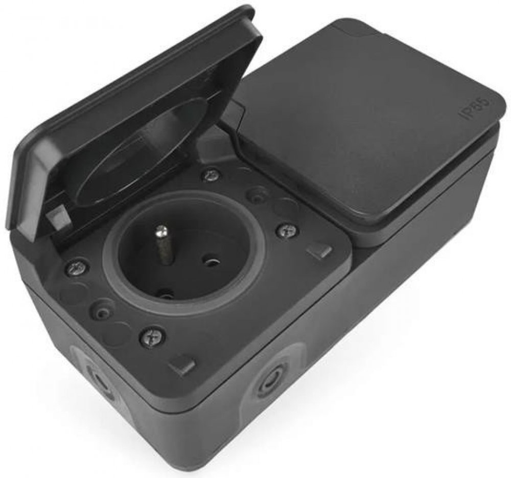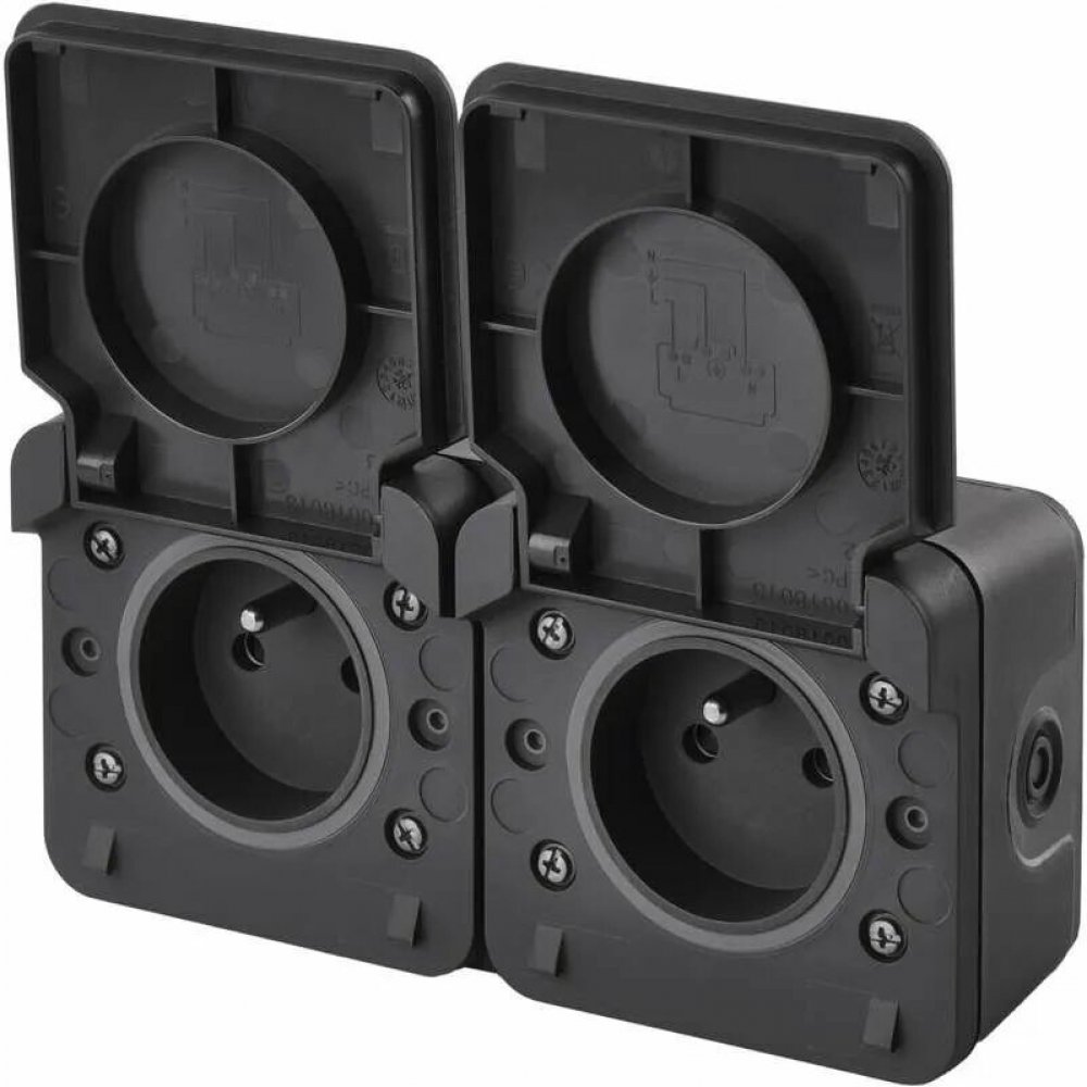 Kvalitní nástěnná voděodolná FRENCH dvojnásobná zásuvka s ochraným víčkem vyrobena ve Francii.