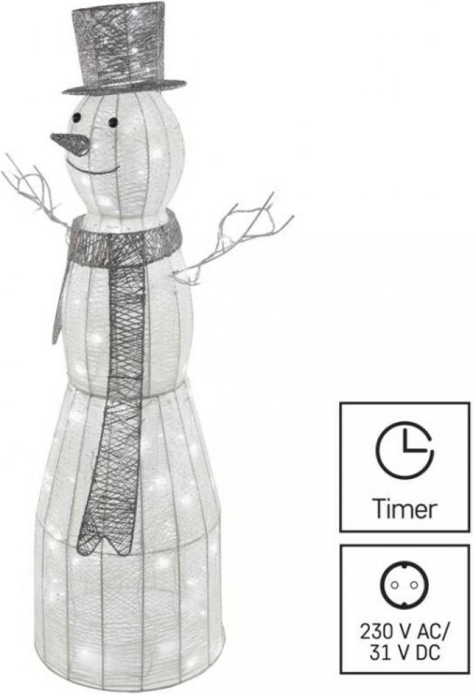 Emos DCFC01 LED vánoční sněhulák ratanový 124 cm studená bílá časovač