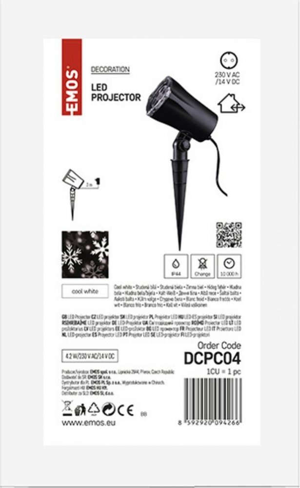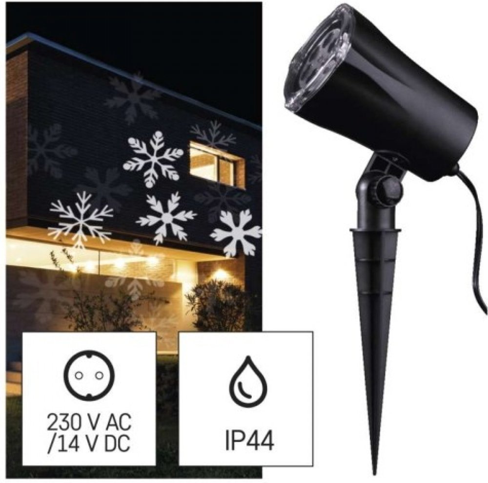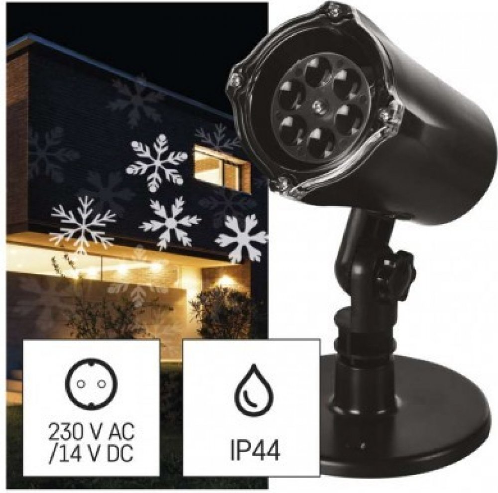 Emos DCPC04 LED dekorativní projektor vločky 3 6W IP44 studená bílá rotující světlo černá