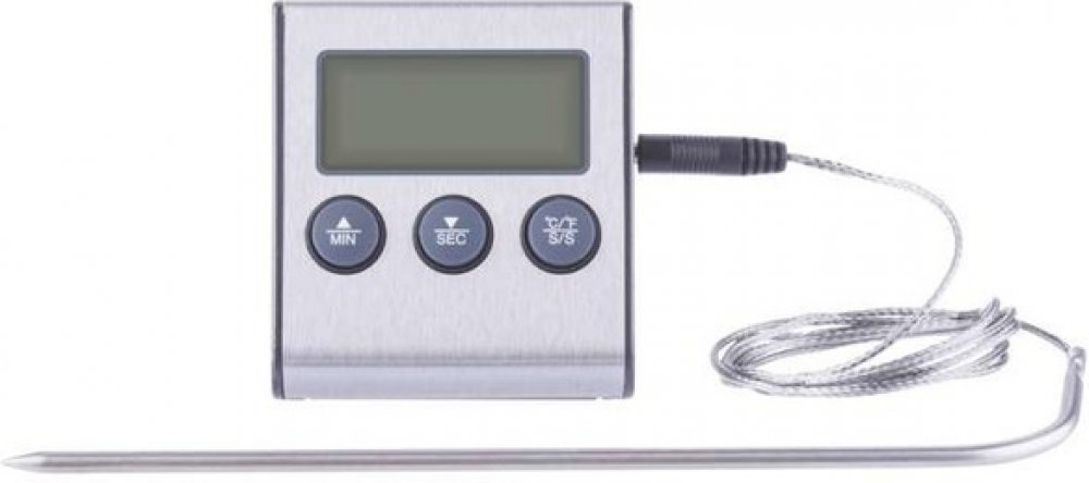 Digitální grilovací teploměr a minutka E2157Praktický pomocník při přípravě pokrmů, který přesně naměří vnitřní teplotu připraveného masa. Díky tomu dosáhnete dokonalého propečení.Technické údaje:paměť poslední hodnoty: anomagnet na připevnění: anoodpočet času max. od: 99 minut 59 secfunkce stopky: anoprovedení teploměru: drátovýdrátová sonda k čidlu: 1,4 mmin. a max. teplota: nehodiny: neteplotní výstraha: anosíťový adaptér: nekalendář: neLED podsvícení displeje: neopakované buzení: nenapájení stanice: 1× 1,5 V AAA (není součástí balení)teplotní index: nenapájení čidla: nemožné další čidlo: nevnější vlhkost: nebudík: netrvalé podsvícení: nevnitřní teplota: nedosah ve volném prostoru: nevnitřní vlhkost: nebarevný displej (black mask) podsvícený: nevenkovní teplota: -20 °C až +250 °C, rozlišení 1 °Cčasová pásma: nedatum: nepřenosová frekvence: netrend teploty: netrend tlaku: nemožnost nastavení jednotky teploty °C / °F: °C / °F12/24 formát času: nemožnost zavěšení na zeď: anoprodejní obal : 1 ks, krabičkarozměr hlavní jednotky: 18 × 65 × 70 mmvelikost displeje: 47 × 21 mmrozměr čidla: ne