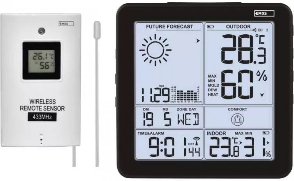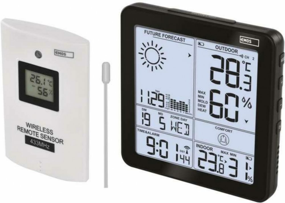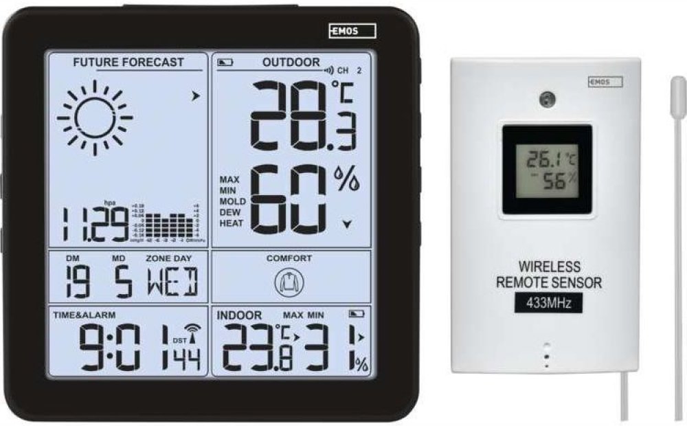 Emos Domácí bezdrátová meteostanice E5080, černobílá