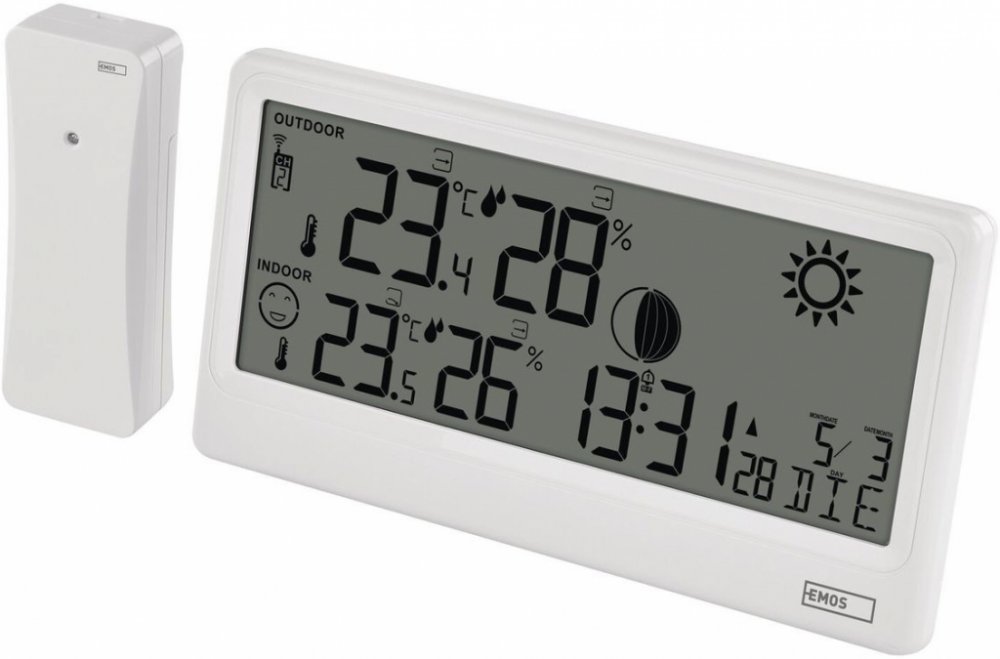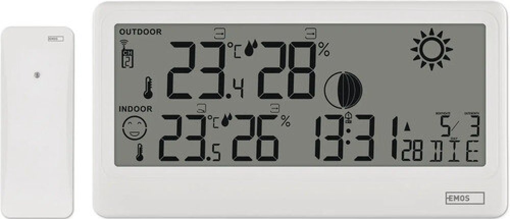 Díky této meteostanici budete vždy s jistotou vědět, na jaké počasí se připravit a nic vás nepřekvapí. Aktuální informace vždy k dispozici.Výhody produktuMěří vnitřní a venkovní teplotu a vlhkost.Možnost pověsit na zeď i postavit na stůl.indikace slabých baterií.