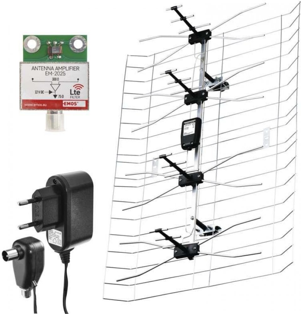 Perfektní příjem digitálního televizního vysílání (DVB-T, DVB-T2) i rádia (DAB).Sada složená z antény, předzesilovače a napájecího zdroje.Horizontální polarizace 30°, vertikální polarizace 40°.LTE filtr (odstraní ze signálu nežádoucí rušení signálem mobilního internetu).Kompatibilní s Full HD vysíláním.