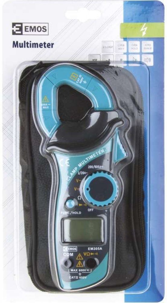 bezkontaktní detekce AC napětí: ne zobrazení displeje: 3,5 digit DC proud: ne AC napětí: 2 V–600 V klešťový multimetr: ano spojitost obvodů: ano indikace slabé baterie: ano elektrický odpor: 200 Ohm–20 MOhm záznam naměřené hodnoty: ano automatické vypnutí: ano DC napětí: 200 mV–600 V napájení: 2× 3 V CR2032 (součástí balení) měření teploty: ne součást dodávky: baterie, návod, měřicí hroty rozměr: 36 × 76 × 190 mm podsvícení displeje: ne volba rozsahu: automatická prodejní obal: 1 ks, blistr test diod: ano test baterií: ne test tranzistorů: ne AC proud: 2 A–600 A záznam max. hodnoty: ne kontaktní detekce AC napětí: ne