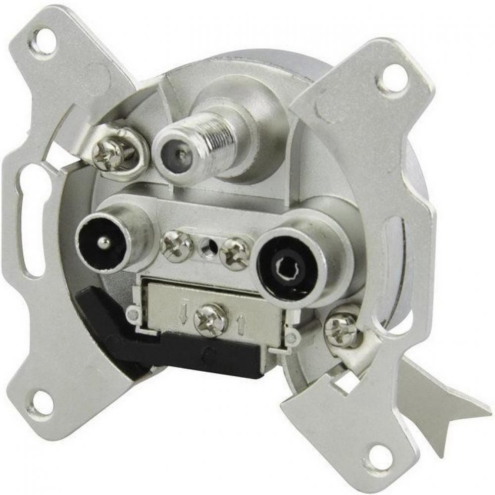 Účastnická zásuvka EU 3303 satelitní koncová s útlumem 3 dB a zdířkami pro TV + Rádio + SAT. Účastnická zásuvka propojuje např. anténu s televizí, satelitem nebo set-top-boxem. SAT zdířka průchozí pro stejnosměrné napětí a lze ji také využít pro průchod napájení předzesilovače v terestrické anténě. Zásuvka je kompatibilní se systémem domovních zásuvek ABB.