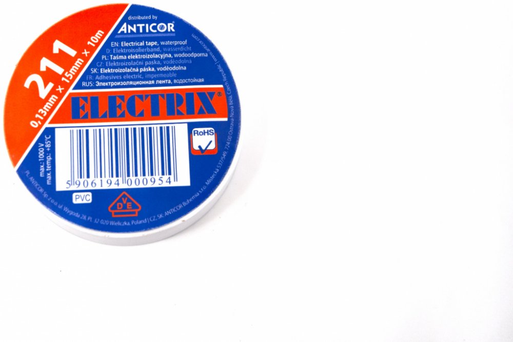 Profesionální elektroizolační páska vyrobená z PVC; šířka pásky je 15 mm, délka 10 m a tloušťka 0,13 mm.