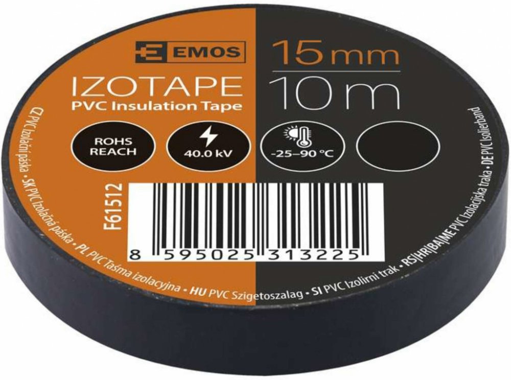 Emos izolační 10 m 1 ks 15 mm vnitřní i venkovní plastové černé
