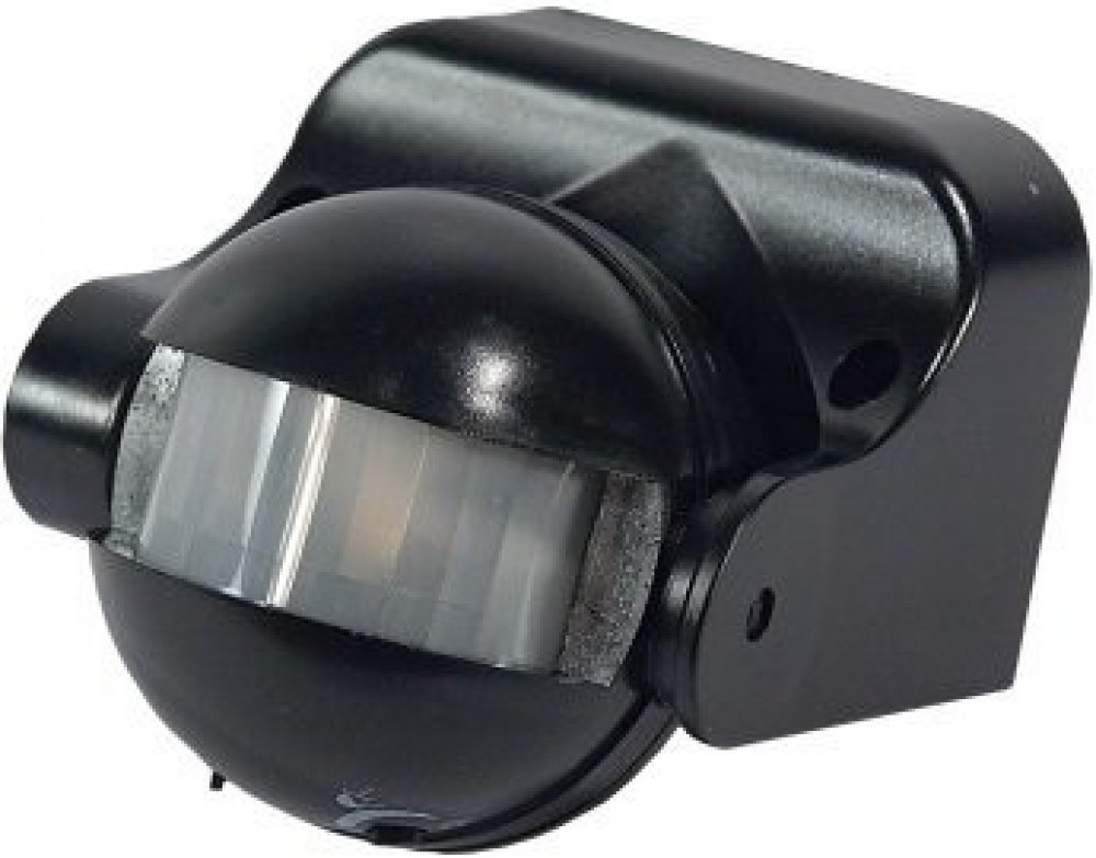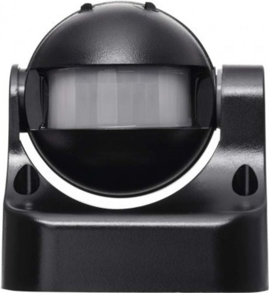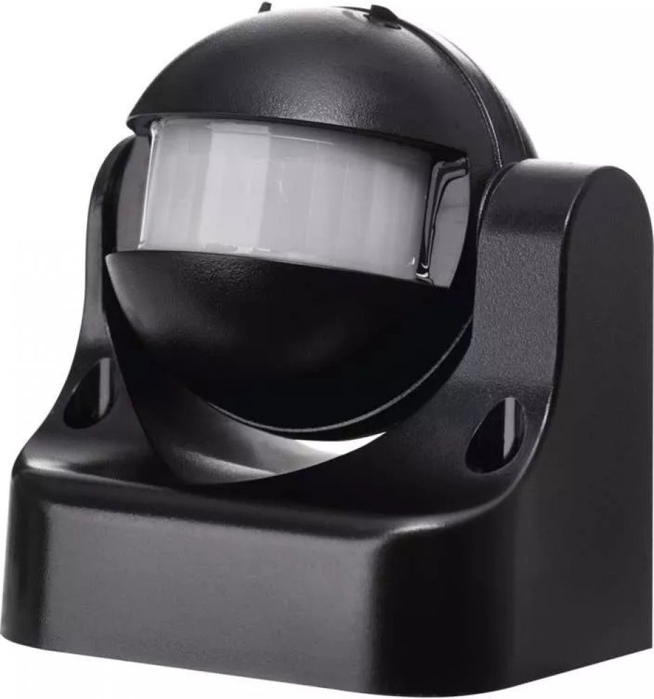 Černý pohybový senzor s vertikálním nastavením v rozsahu 180 stupňů se bude hodit pro automatické ovládání osvětlení nebo jiných elektrických zařízení.