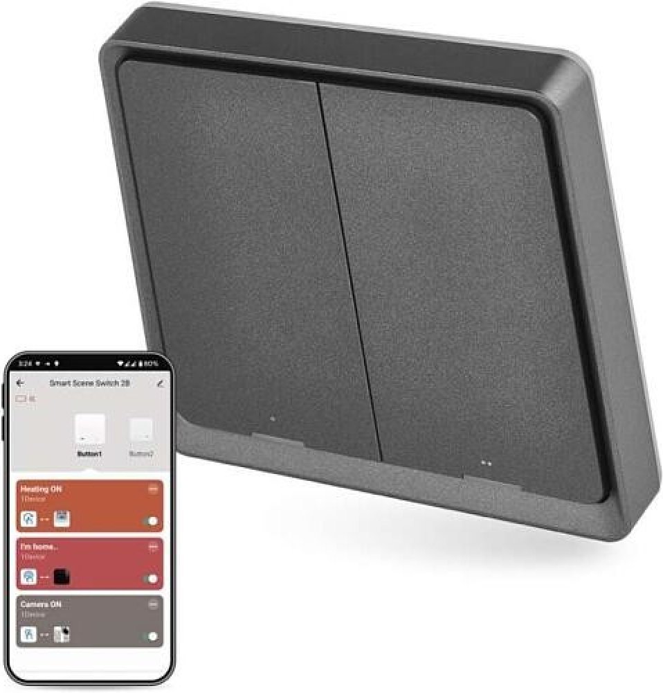 Každé z tlačítek navíc rozeznává tři polohy – standardní jednoduché stisknutí, dvojité klepnutí nebo podržení tlačítka po delší dobu. Vy tak získáváte celkem 6 kombinací, jak si nastavit a pohodlně ovládat vaši domácnost.