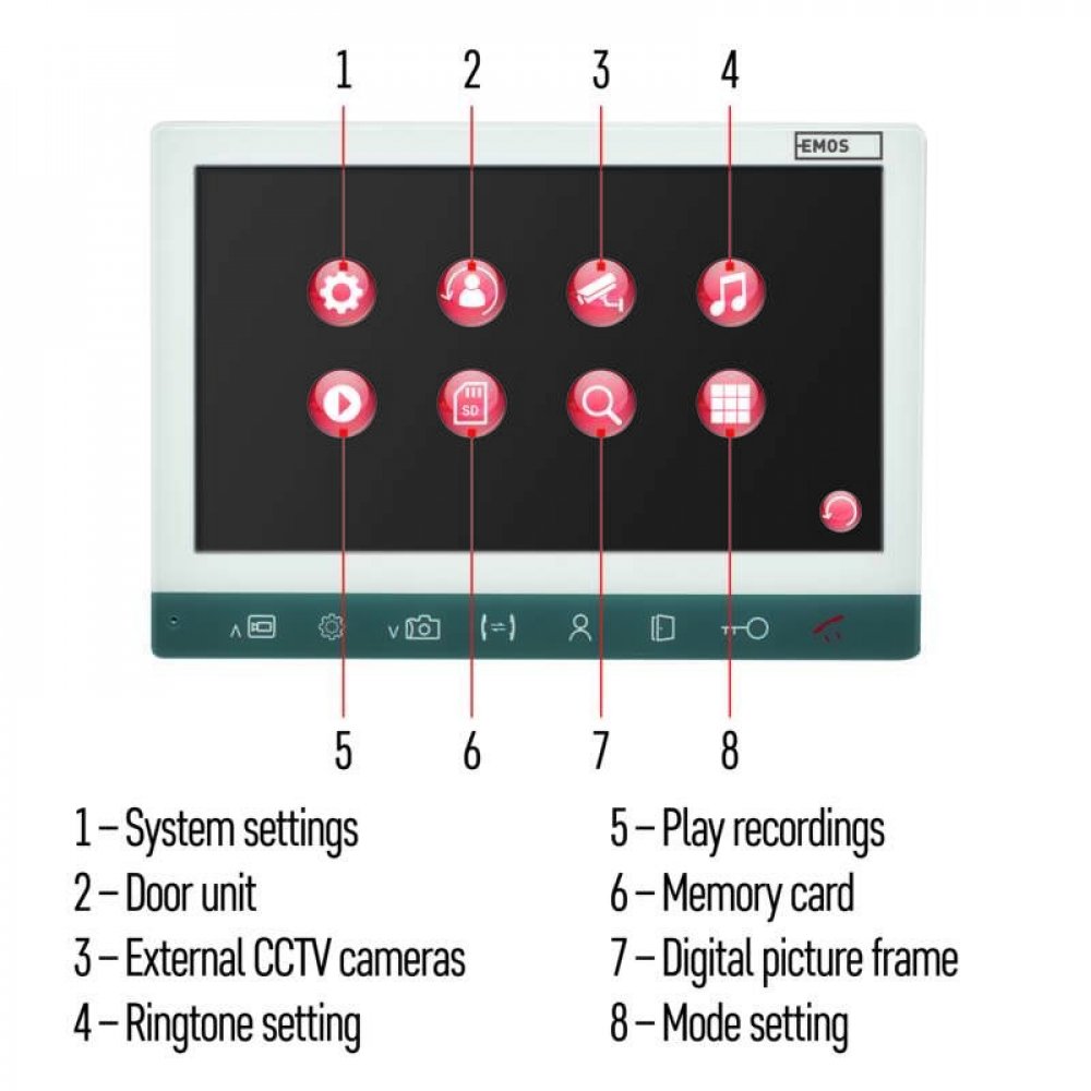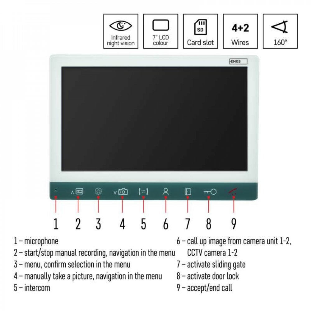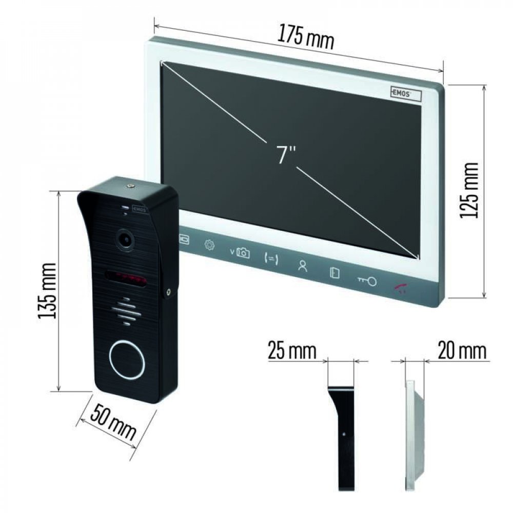 Emos stříbrné 7 palce 4-vodičové (4+n) 1 bez sluchátka videotelefony povrchová