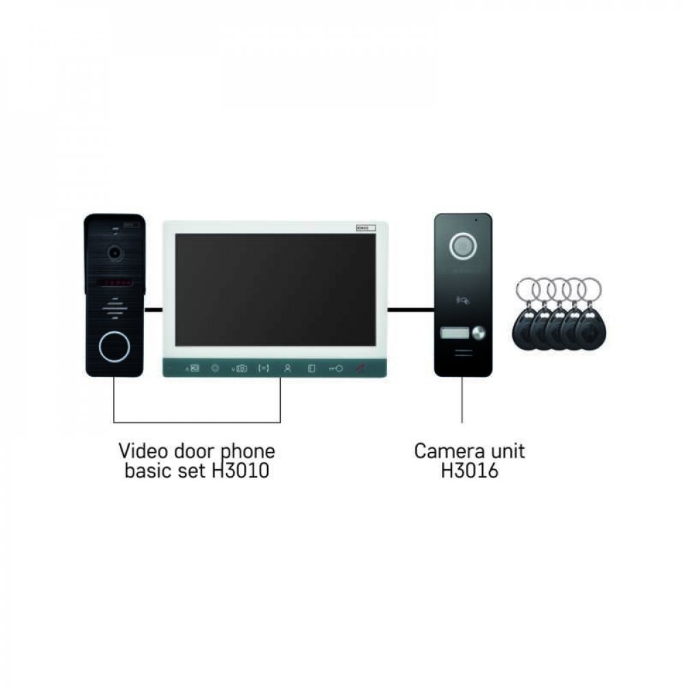 Sada videotelefonu a dveřní kamerové jednotky s HD přenosem obrazuVysoce kvalitní přenos obrazu za všech světelných podmínek. Dveřní kameroví jednotka v provedení antivandal s objektivem, snímající scénu v ůhlu 120°Možnost ukládání fotografií a videa na paměťovou kartu. Funkce intercomu a digitálního fotorámečku.